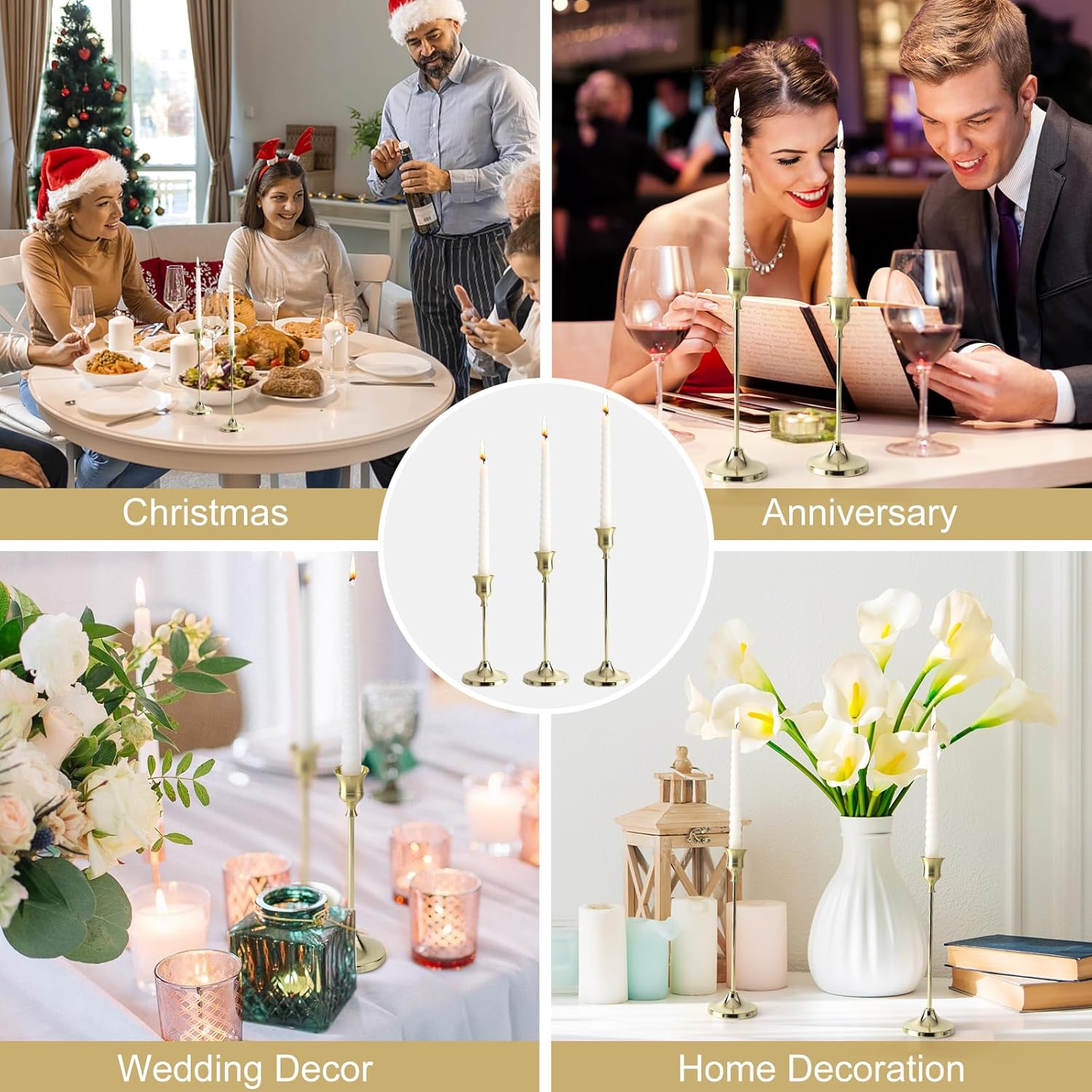 - Applications: This gold candlestick holders can be placed in living rooms, bedrooms, bars, dining tables, or coffee tables to create a family atmosphere for weddings, holiday decorations, ceremonies, and anniversaries.