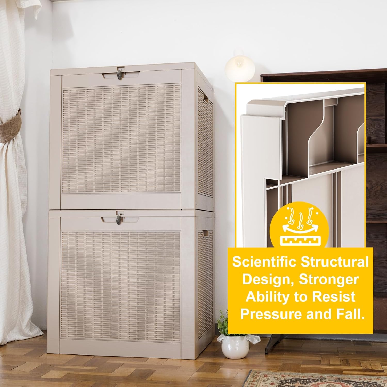 - ADAPTABLE TO VARIOUS SCENES: Whether used as an indoor laundry storage chest or an outdoor deck box container for items like outdoor cushions, garden tools, pool accessories, and this patio storage box provides abundant space. It's also versatile as a side table, yard seat, storage bench, or footrest