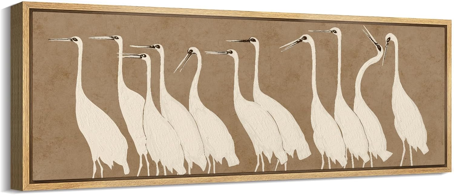 MUDECOR Large Framed Canvas Print Wall Art Minimalist White Cranes on Beige Background Antique Retro Fine Art Illustrations Decorative Colorful for Bedroom - 60"x20"