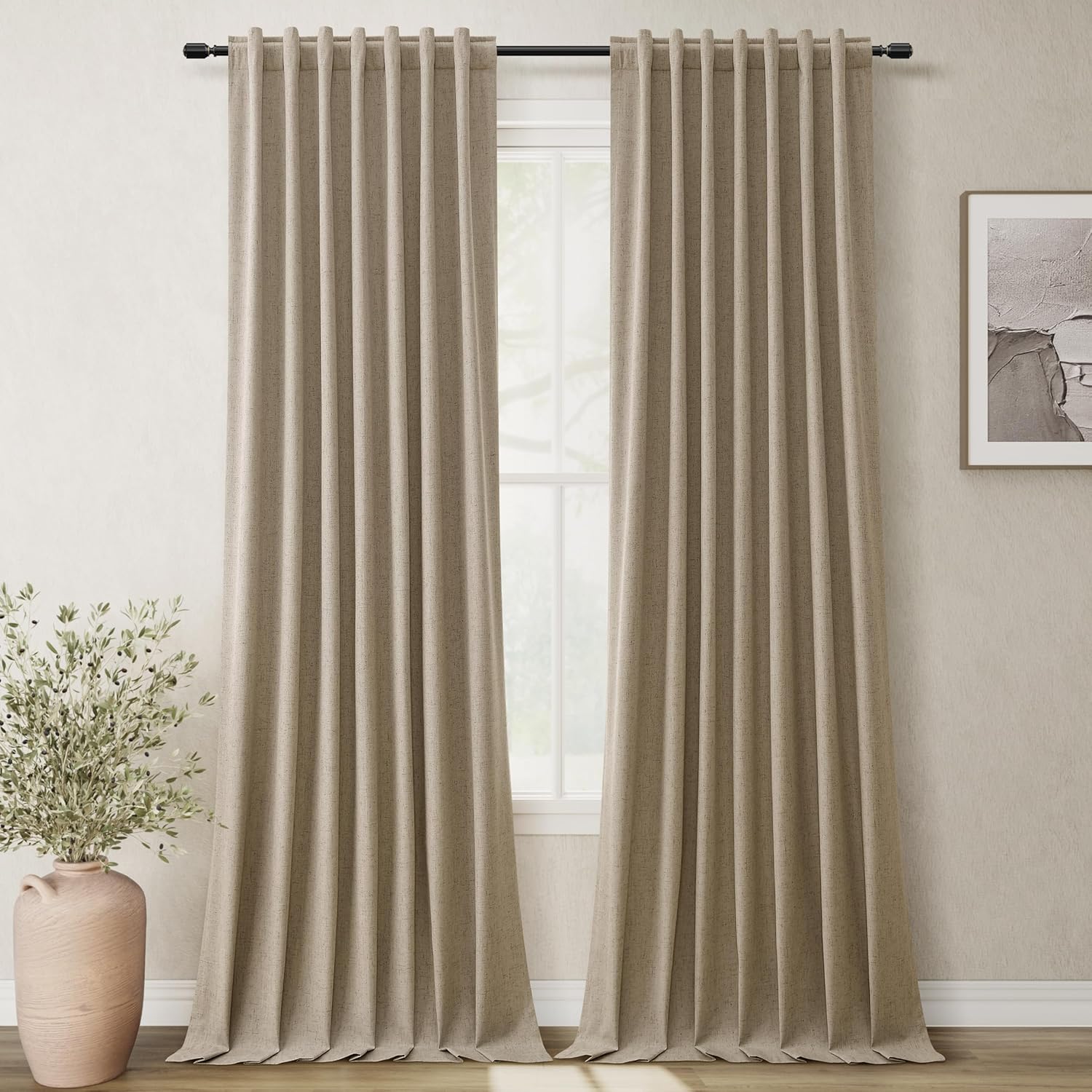 - 3 Hanging Options: Differ from the traditional curtains with grommet, BOODII linen curtains with back tab and rod pocket can full block sunlight fully. (1) Using the back tabs design to create an elegant pleated look and sit closer to the wall than traditional ring curtains, which helps to block out more sunlight; (2) Using rod pocket for a classic effect; (3) Using clip rings on track system or curtain rod, slide open/closed easily (clip rings are not included).