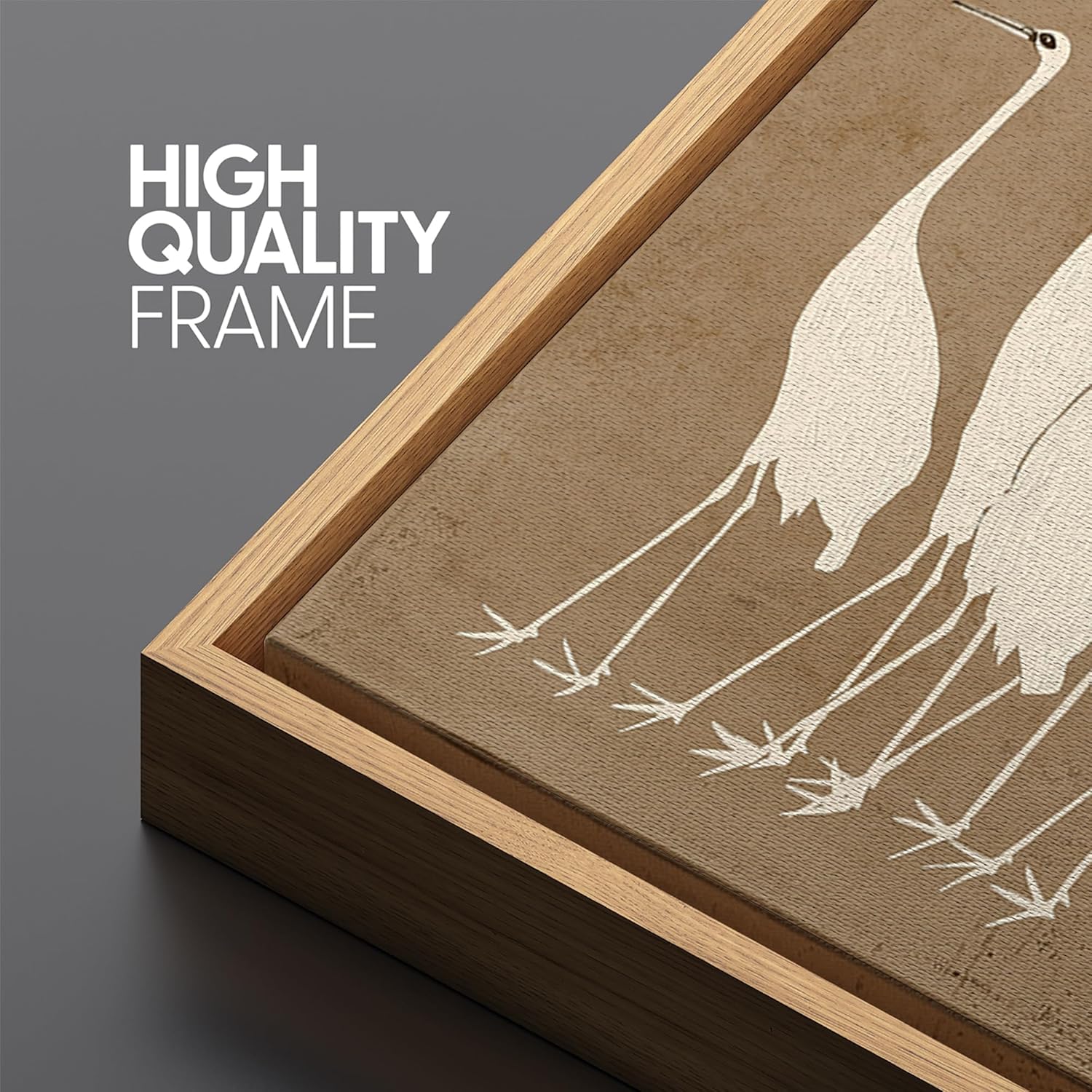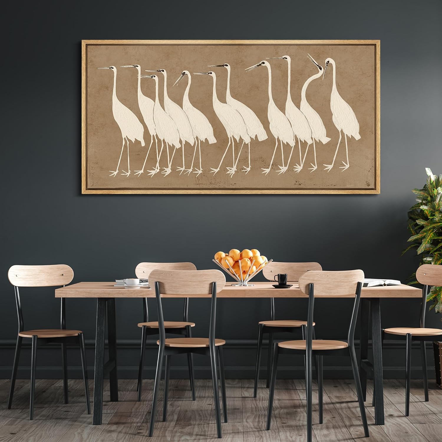 MUDECOR Extra Large Framed Canvas Print Wall Art Minimalist White Cranes on Beige Background Antique Retro Fine Art Illustrations Decorative Colorful for Bedroom - 60"x30"