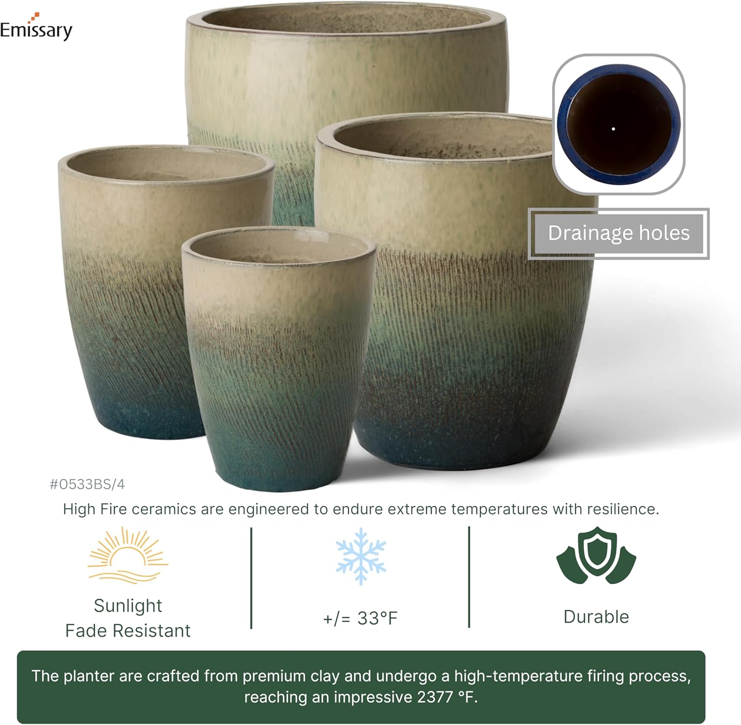 Emissary Home and Garden Bullet 11.5 in. Bayside Green Ceramic Round Planter (11.5 in. L x 11.5 in. W x 14 in. H) with Drainage Hole