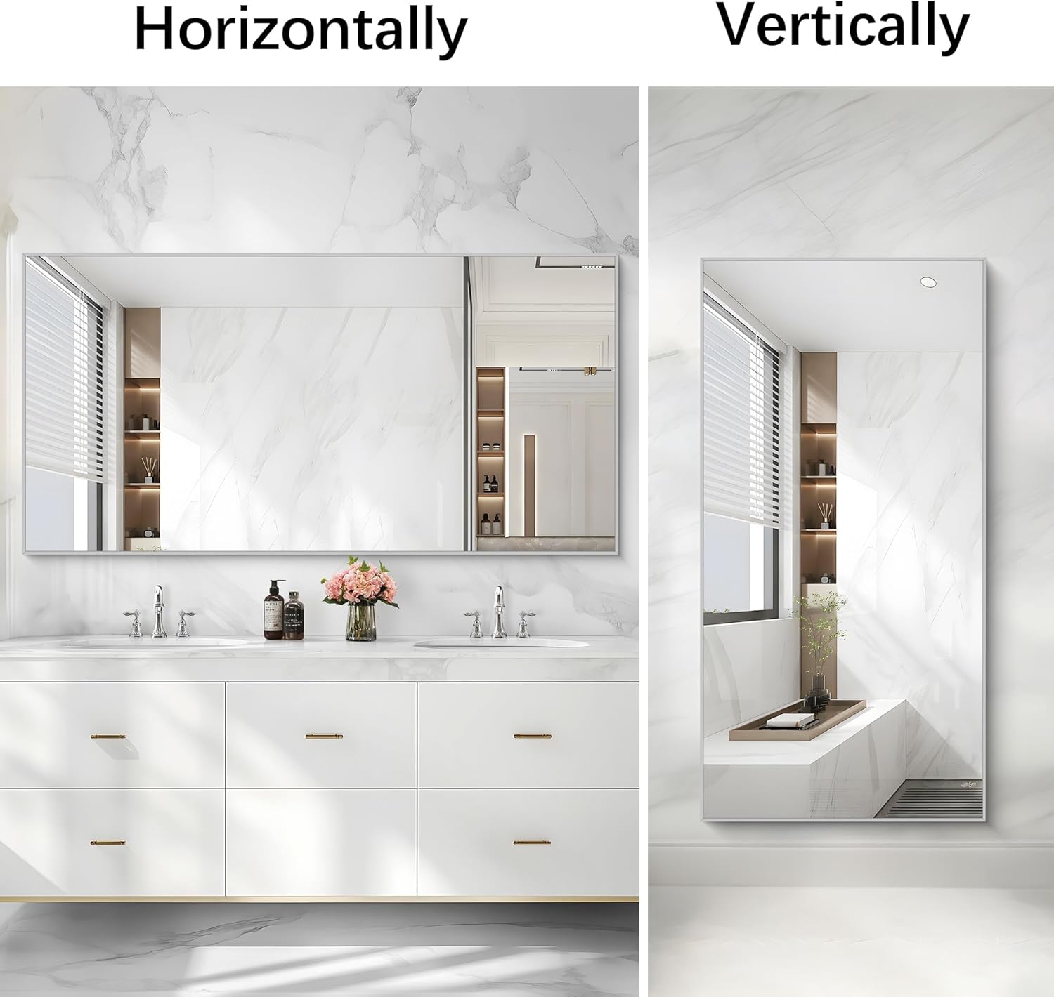 - HORIZONTAL OR VERTICAL HANGING: More mounted keyholes allow for horizontal or vertical hanging; bathroom mirror comes with nails, you can quickly complete the installation with the help of a drill and a screwdriver (no included)