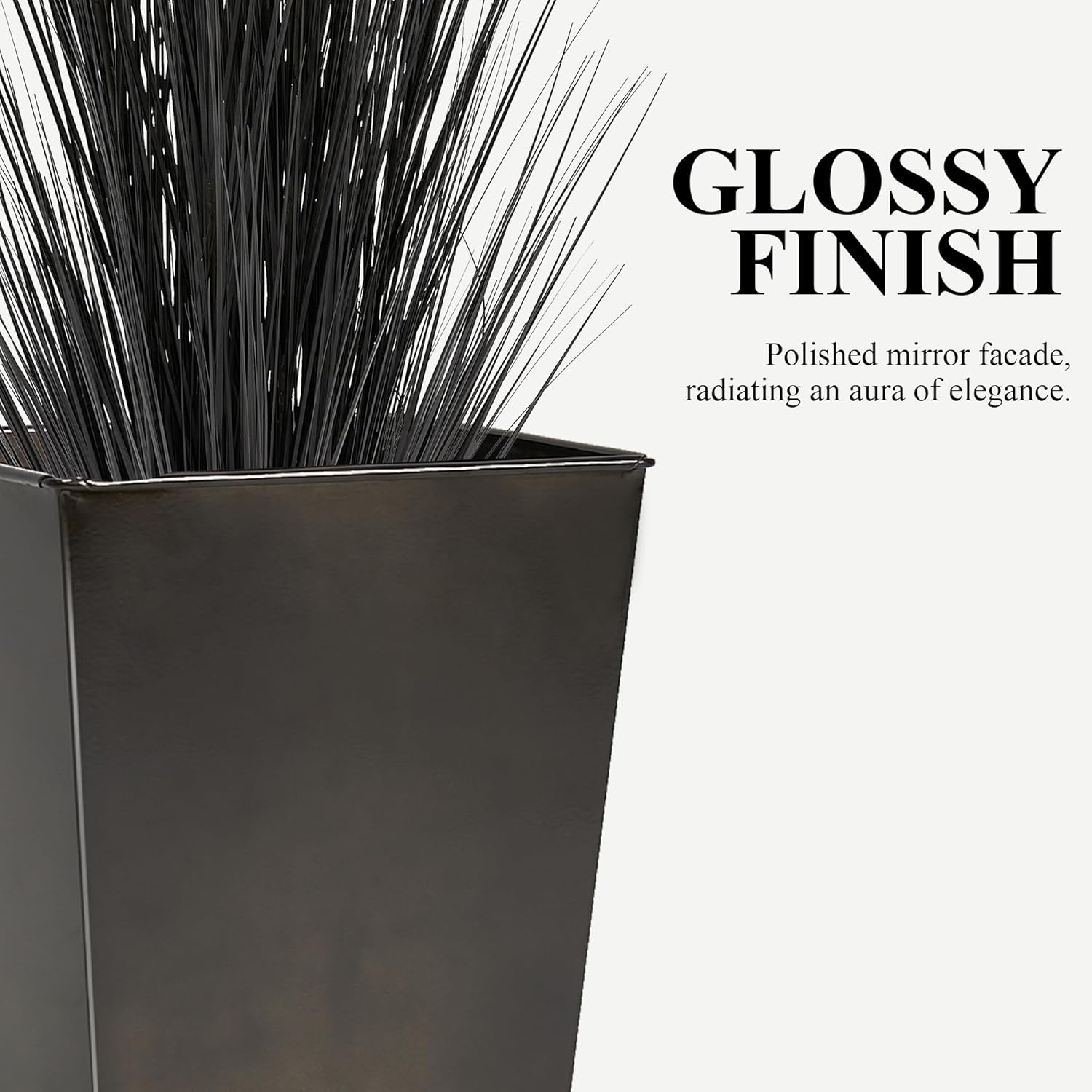 WORTH Garden Large Metal Glazed Planter Set of 2 (25" + 28"), Luxurious Glossy Finish Black Tall Square Tapered Steel Plant Pot, Decor Flower Pot Indoor & Outdoor, Drainage Hole & Dual-Purpose Saucer