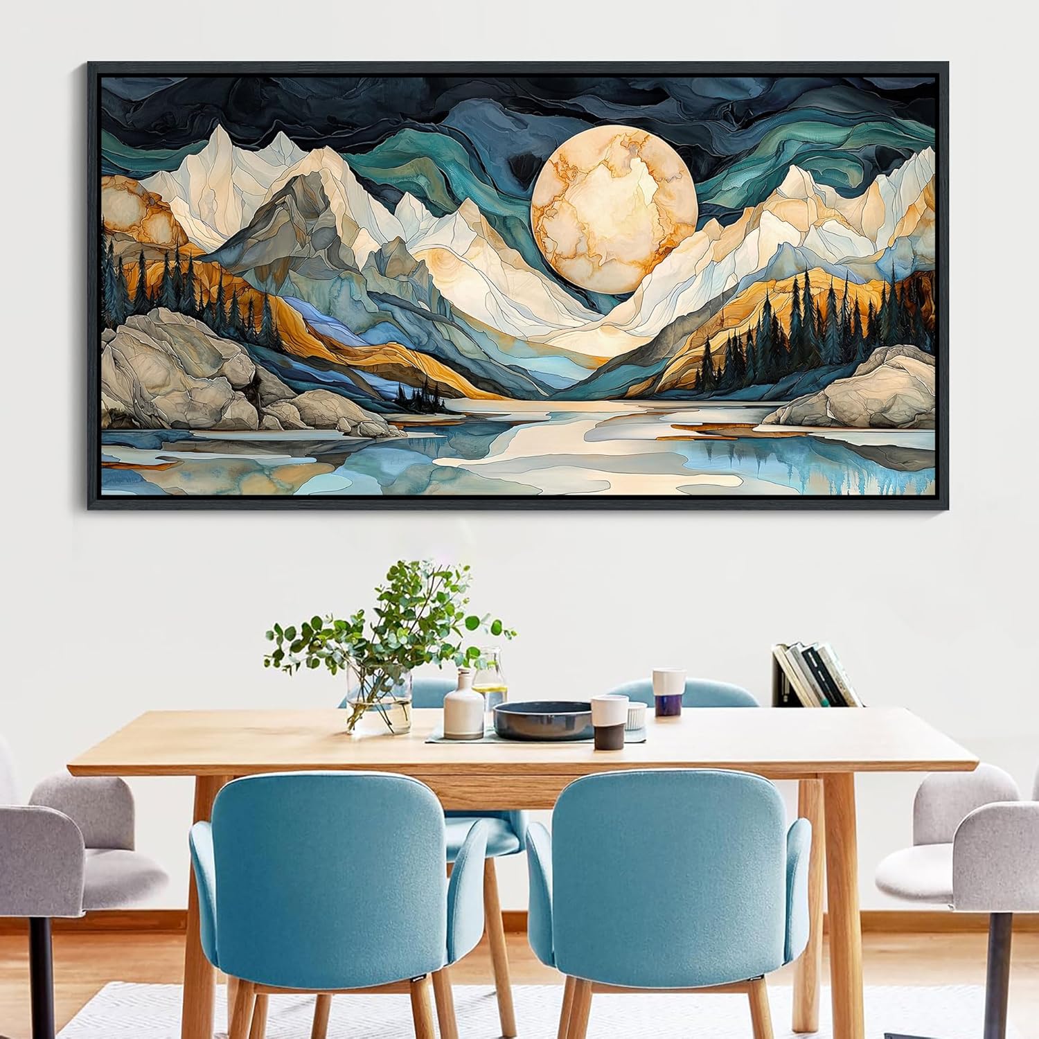 - Unique artistic style: This large framed canvas wall art uses a unique artistic style that combines landscape with abstract color flow to give a dreamlike visual experience. This style stands out from many traditional landscape paintings and can add a unique artistic atmosphere to any room.