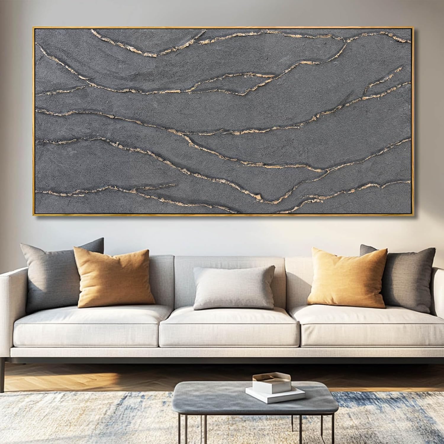 Gold and Grey Wall Art Framed Pictures Wall Decor Neutral Artwork Hand Painted 29"x58" Abstract Wall Art for Living Room Dining Room Kitchen