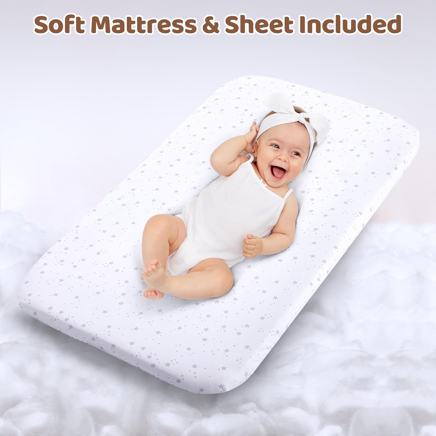 - ăBassinet Bedside Sleeperă The bedside crib comes with mattress pad and fitted cute sheet. Additionally, a large storage basket is included, providing convenient storage for baby's essentials within easy reach.