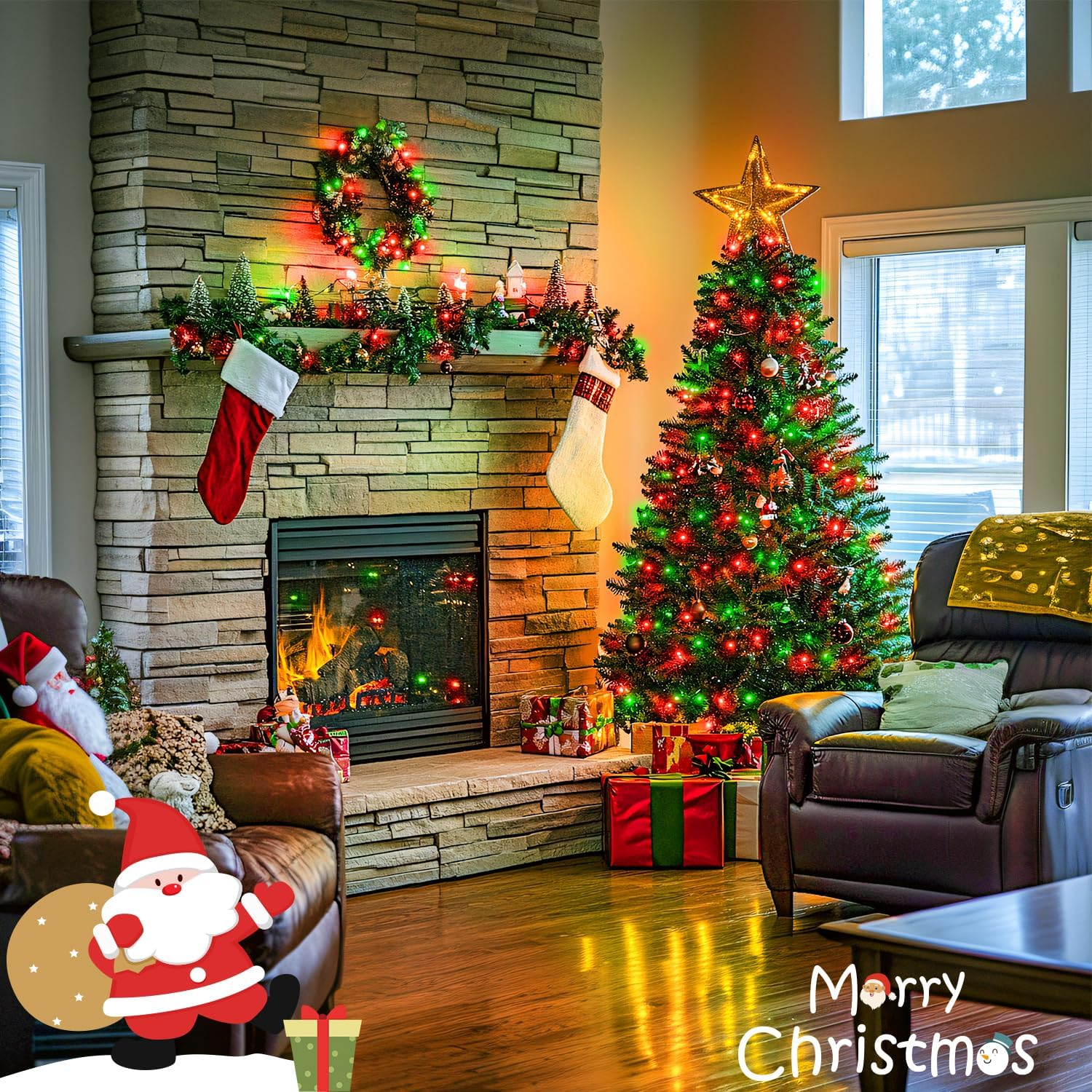 - 【Red and Green Christmas Lights】Our Outdoor Christmas decor lights use higher brightness LED bulbs, while the plug power supply greatly improves the stability of the bulb brightness, making each of our LED bulbs shine 360 degrees, providing you with a constant crystal clear glow! These Plug in Twinkle lights are very warm, soft, and non-dazzling, adding a classic and charming glow to your Christmas decorations.