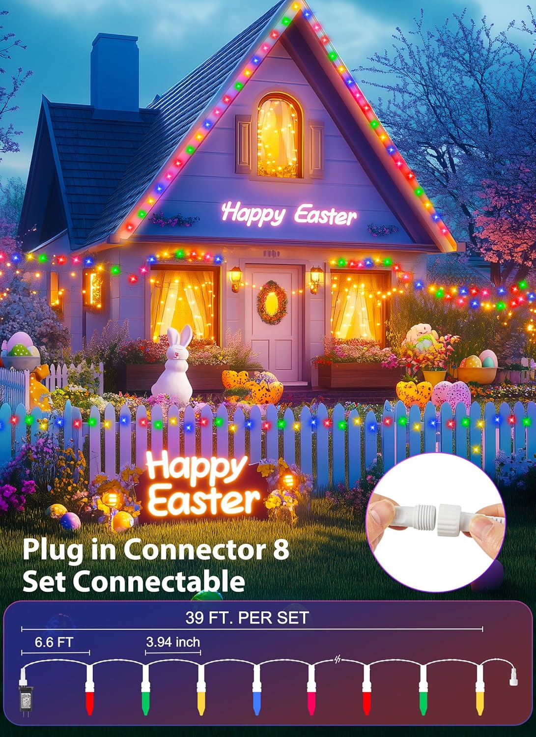 - LED Easter Mini Lights: Upgraded sturdy 39 Ft. white cord, 100 LED with 3.9-inch lights spacing, 118 inches lead cord, pink + multicolor lights for Easter decor, an ideal holiday gift for family, friends, colleagues, relatives, or yourself