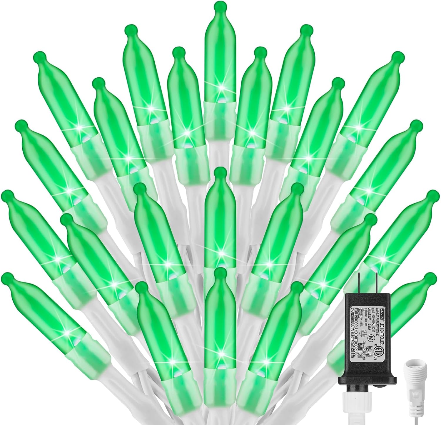 - Creative Mini Green Lights: 39 feet St Patrick's Day decorations light on white wire set plug in with 100 counts LED lights with 3 inch lights spacing, 6.6 feet lead cord, green string lights for Christmas decor, an ideal holiday gift for family, friends, colleagues, relatives or yourself