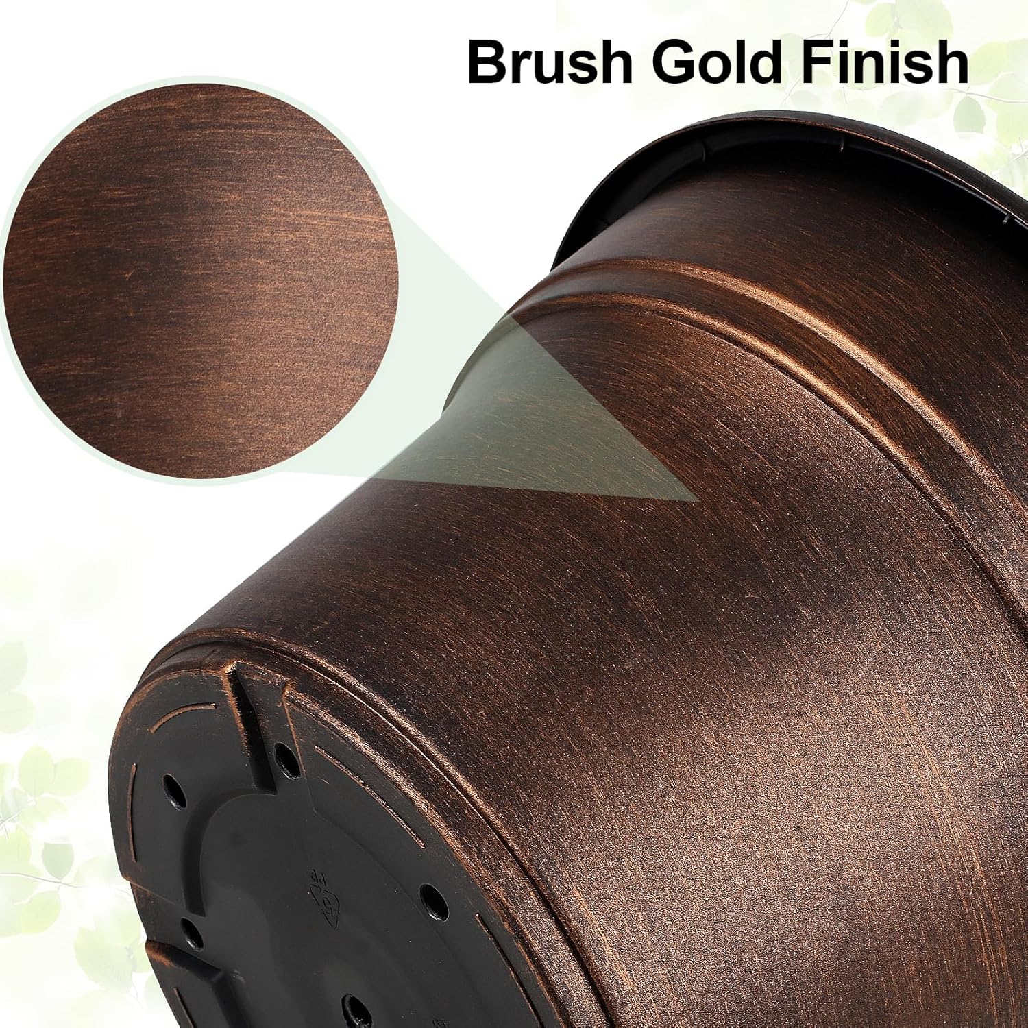 - 【TRADITIONAL DESIGN】Plastic planters for indoor plants with trays are designed in dark gold colors & a classic round look, which allow this pot to fit into any indoor & outdoor setting. With these golded flower pots, it could adds fresh, decorative flair to your home. Decorate your windowsill, desktop, shelf, bedroom, living room, kitchen, garden, office with our 8 inch plastic plant pot.