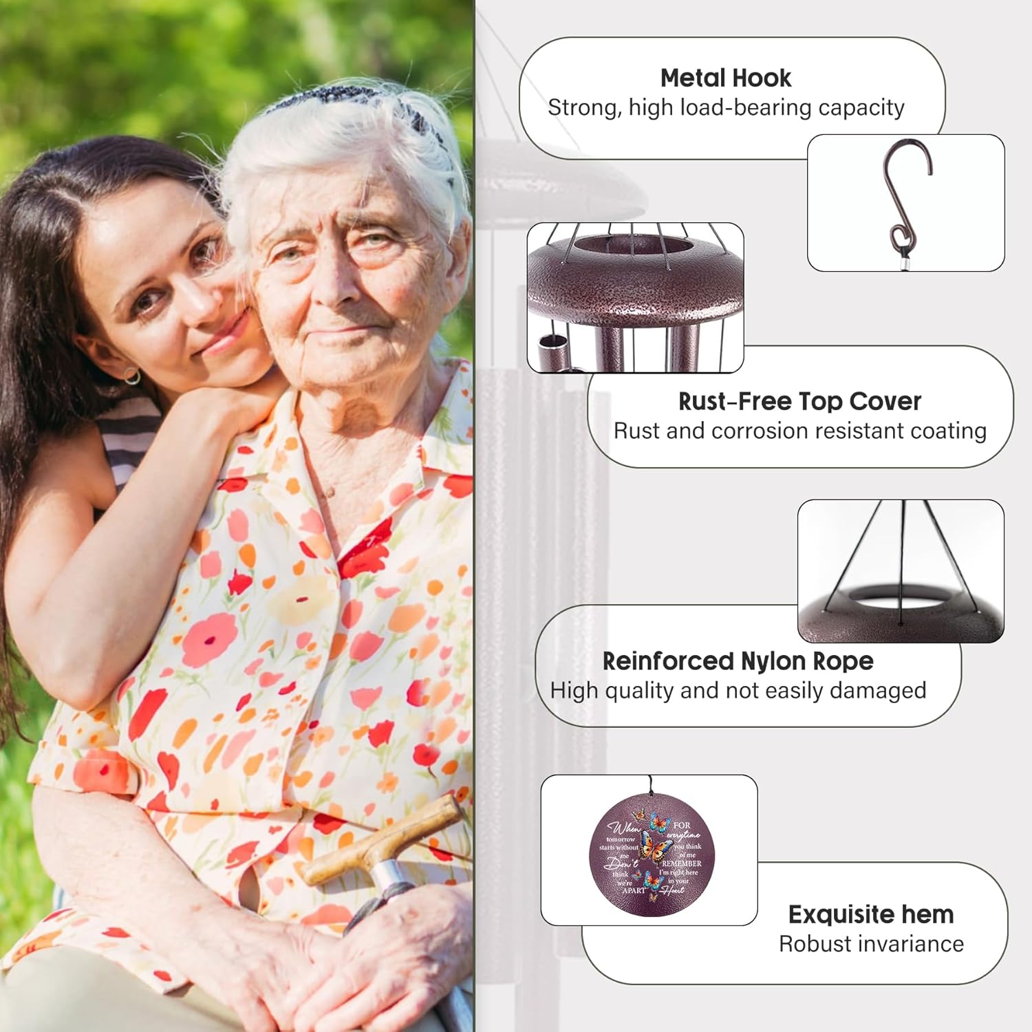 ASTARIN 36" Large Deep Tone Personalized Sympathy Wind Chimes, Memorial Wind Chime for Loss of Mother Father Loved One, Bereavement Gifts Decor Outdoor Patio Garden Graveyard