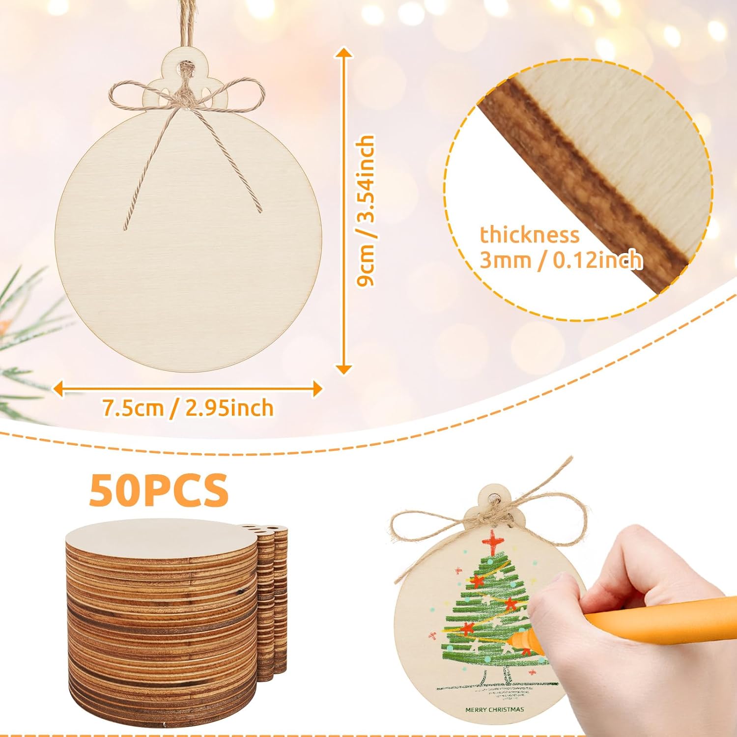 - 【Blank Canvas for Creativity】 With 50 blank wooden ornaments, you have a blank canvas for your DIY projects. Use them for Christmas signs, gift tags, table numbers, and more. These wooden ornaments are the perfect base for your artistic expressions.