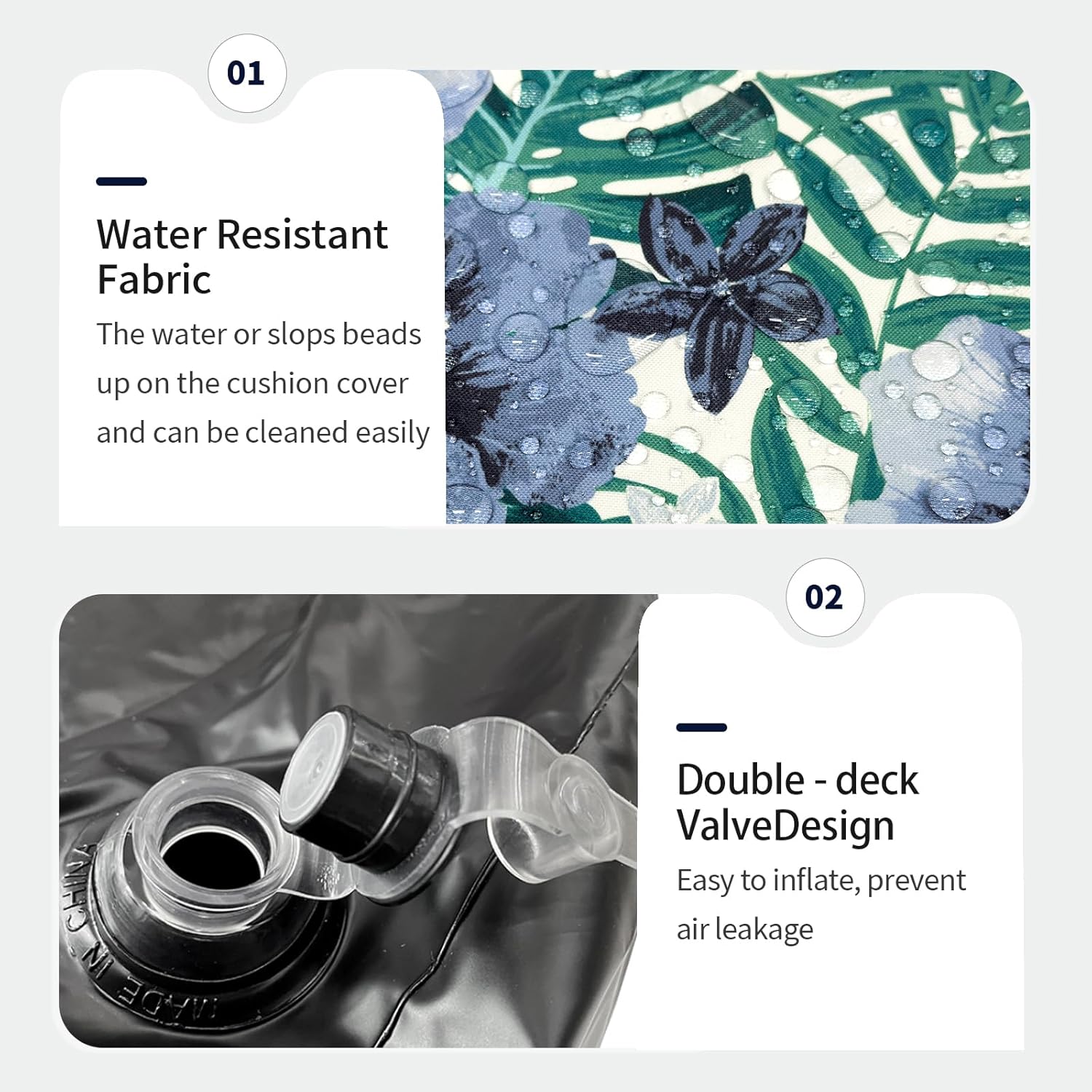 - 【EASY to INFLATE】 - Begin by placing the inflatable component into the cover prior to inflation. Utilize the foot pump to inflate it to approximately two-thirds of its size, then zip the cover halfway. Continue inflating until fully expanded and securely zip it closed. Ensure that the valve is properly sealed