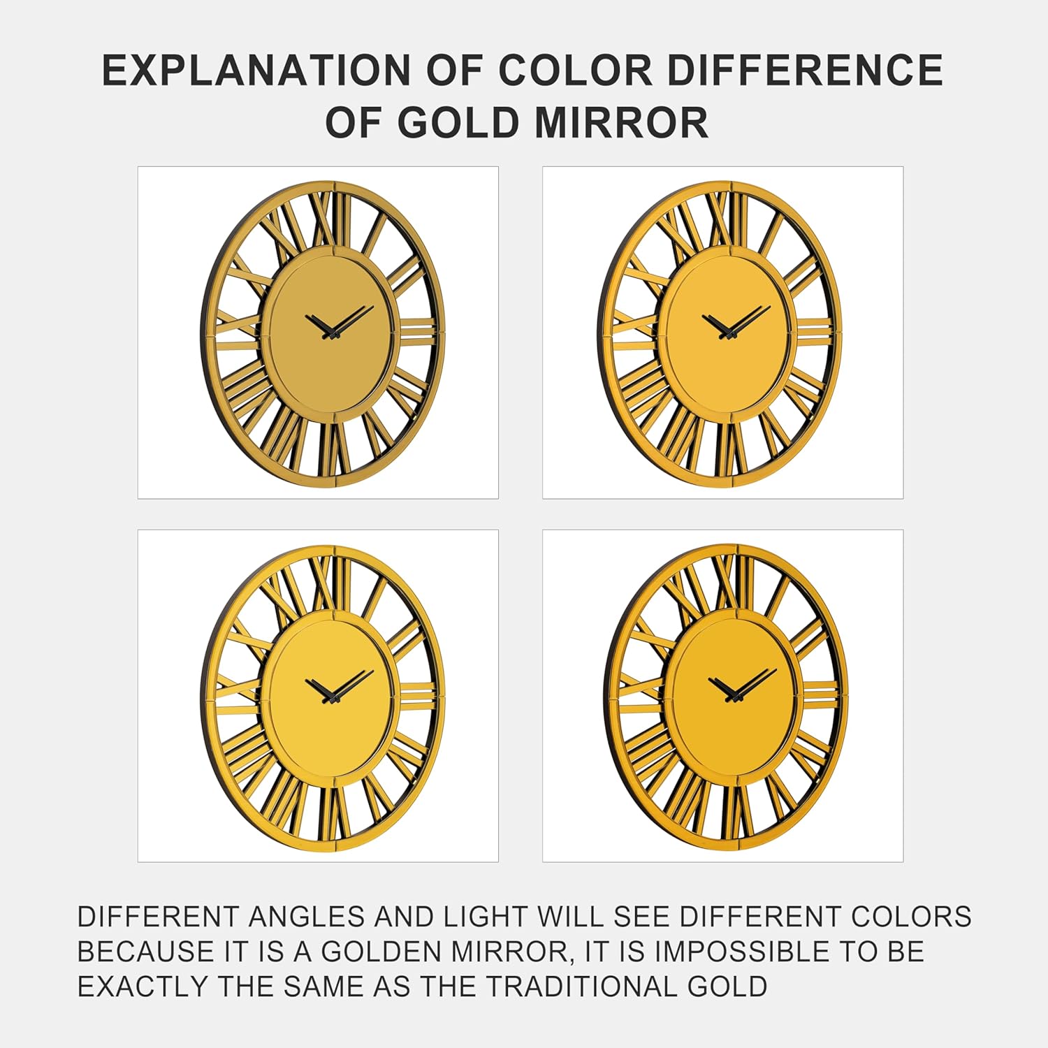 - 【Premium Materials】Constructed with a 4mm thick gold mirror and sturdy MDF backing, the wall clock is equipped with a silent sweep mechanism for accurate timekeeping. The one-piece movement cover safeguards the mechanism, while two robust hooks guarantee the stability of this large wall clock for enduring use.