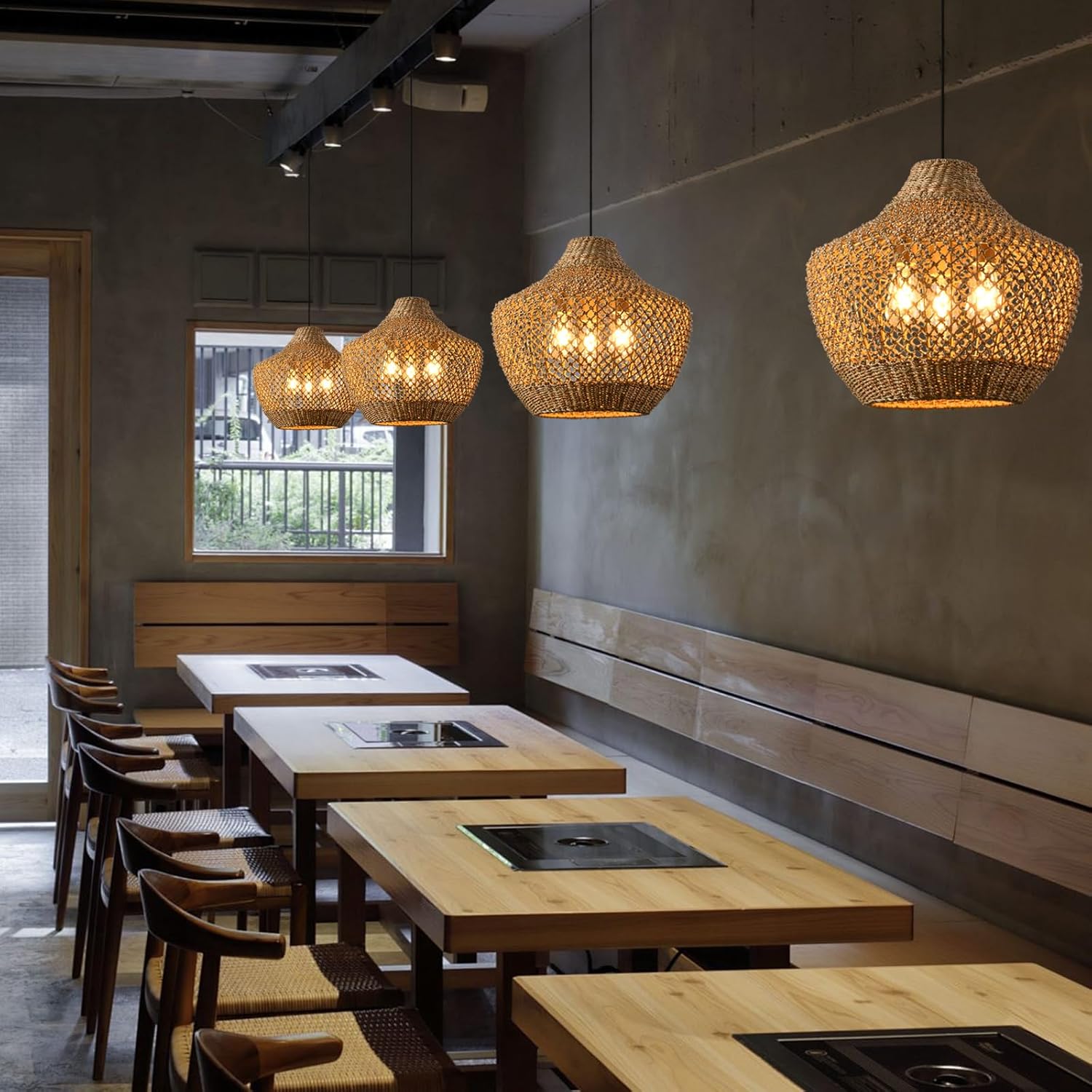 - Simple installation: This is a hand-woven rattan lamp; includes installation instructions and accessories required for installation; installation is very convenient; for safe and reliable installation; we recommend that you contact a professional electrician directly