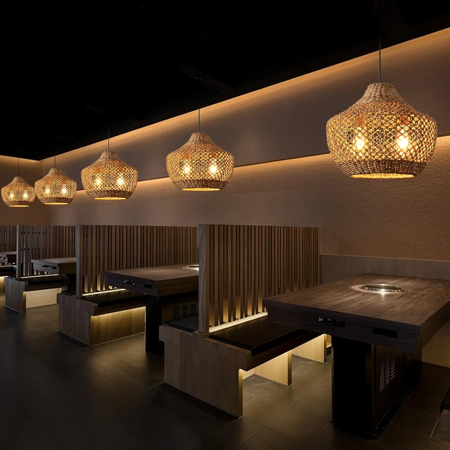 - Light bulb requirements: This rattan pendant light uses a US standard E26 lampholder up to 60W.Compatible with a wide range of E26 bulbs;LED incandescent CFL halogen (bulb not included)Wicker hand-woven pendant fixtures make it perfect for large spaces such as dining rooms and kitchen islands