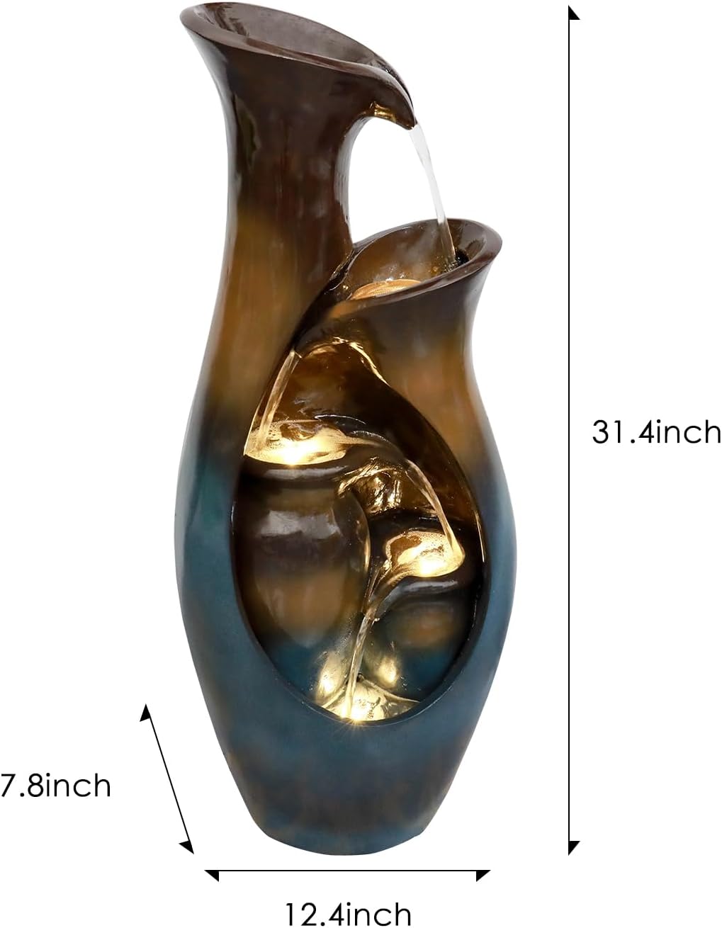 watnature 31.4”H Outdoor Garden Fountains and Waterfalls -Modern Indoor Water Jar Fountain with LED Lights&Pump for Garden, Patio, House, Home Decor, Indoor Zen Fountains Outdoor Waterfall Features