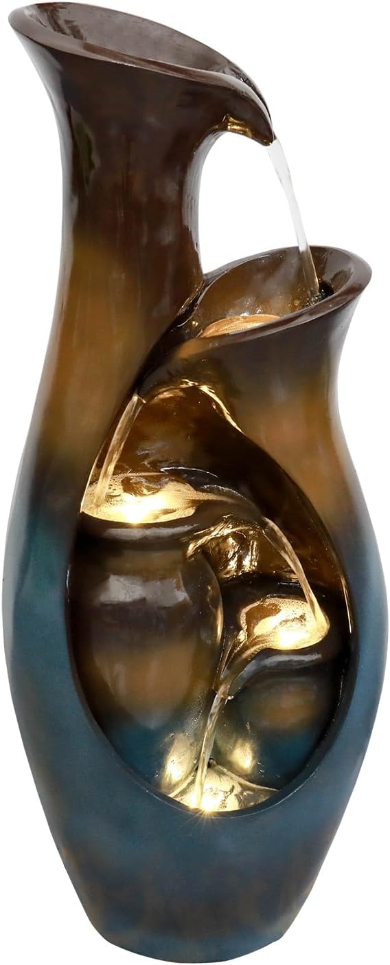- 【LED Lighted Outdoor Waterfall Fountain with Modern Jar Design】The outdoor water fountain with modern Jar design and contemporary curves texture is the perfect addition to your indoor outdoor house and office decor. Interior pump keeps the water flowing circularly. And integrated LED lights illuminates the flowing water to add an element of visual charm and elegance. Creates a visually appealing and calming ambiance, especially in the evening.