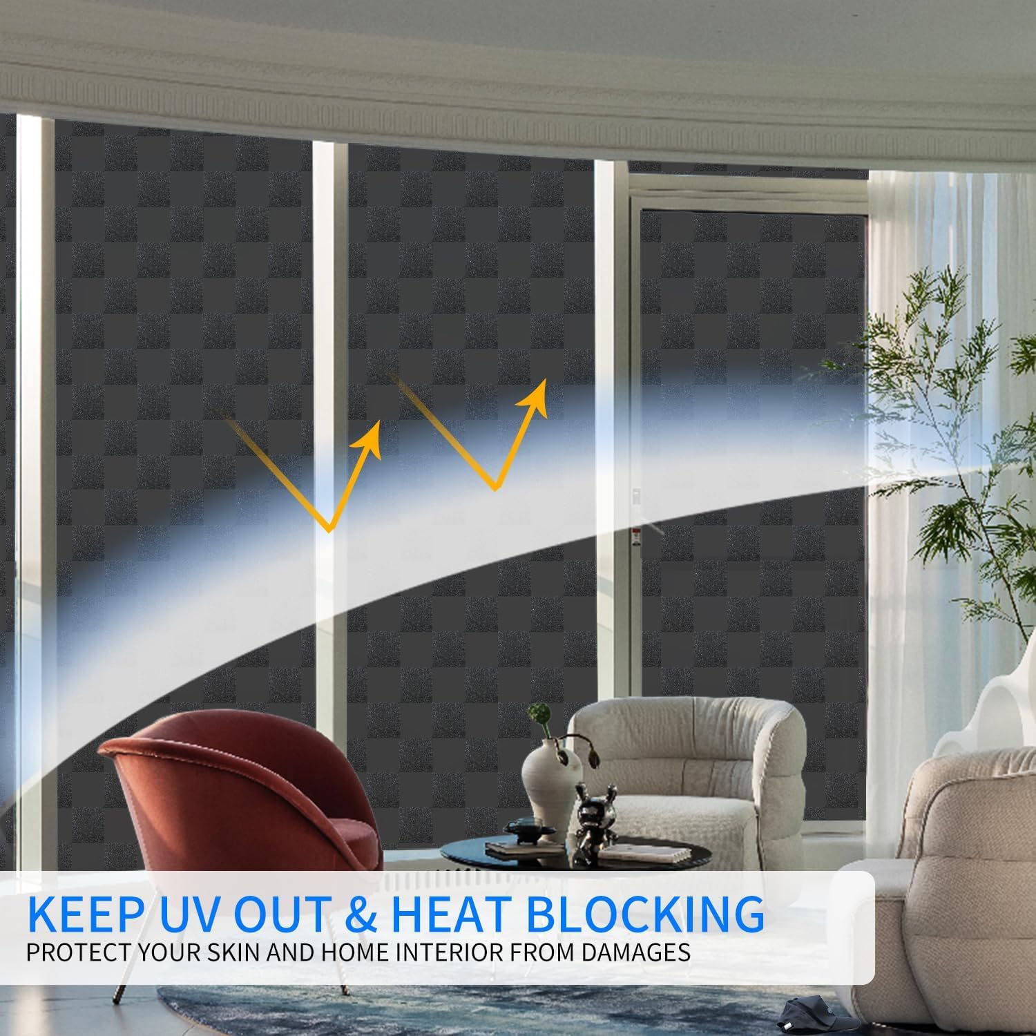 Window Film Privacy Day and Night with Installation Tools, Static Cling Glass Film Ideal for Home Shower Office Glass Door (Black, 35.4 x 78.7 Inch)