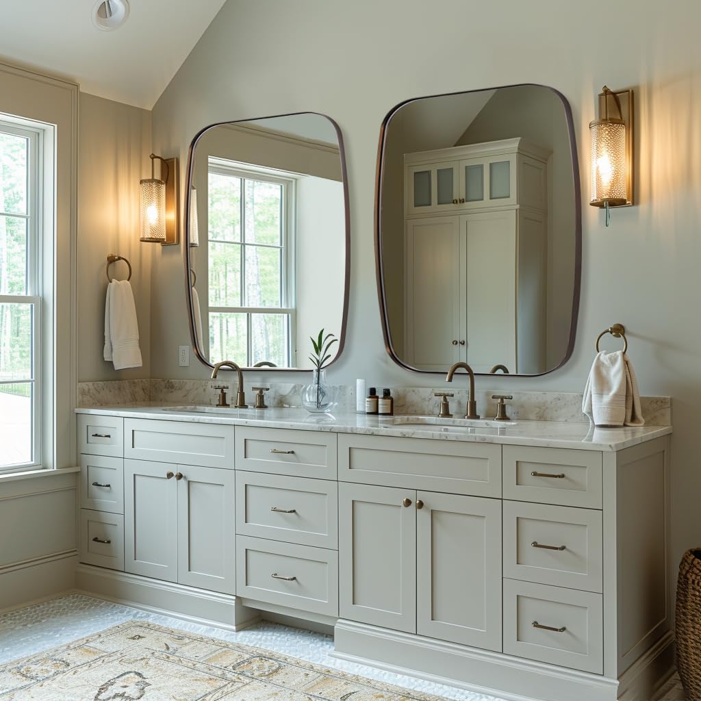 - True Reflection: This vanity bathroom mirror features a 4mm HD glass surface, delivering flawless, distortion-free reflections. Its scratch-resistant and shatterproof design ensures durability, while the easy-to-clean surface maintains a perfect shine with minimal effort