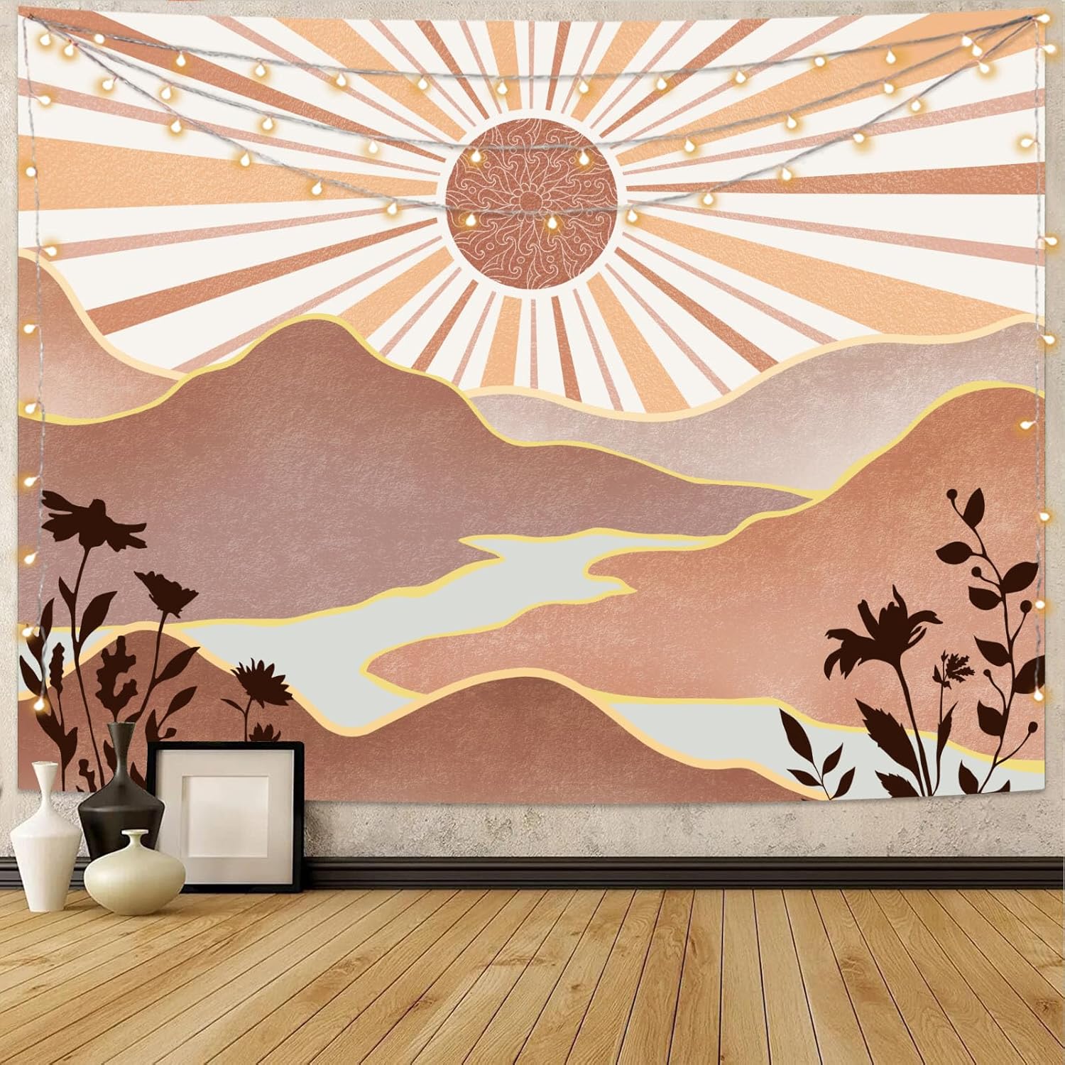 Lunerfex Boho Sun Tapestry Sunset Wall Tapestry, Mountain Tapestries for Bedroom 80s Tapestries Wall Hanging for Bedroom Living Room Decor Boho-1 44"x60"