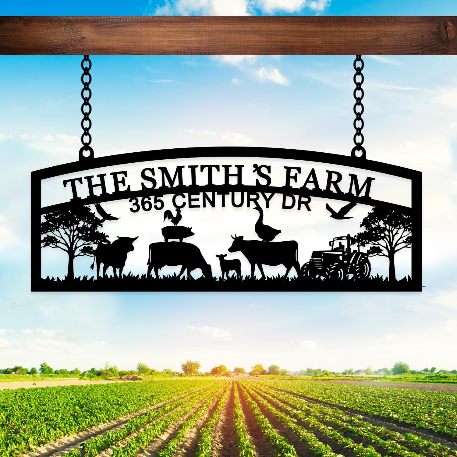 - Personalized Farm Design: Custom designed Hanging Metal Farm Sign, complete with your last name, is the perfect addition to your farm or rural property. The personalized design adds a touch of unique rustic charm to your home.