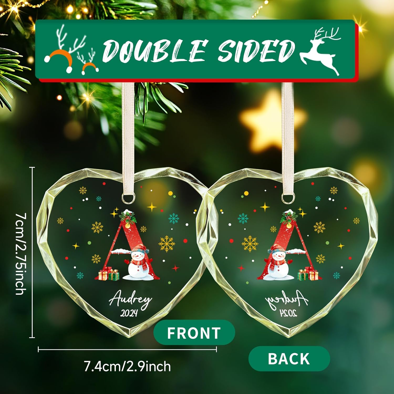 Personalized Christmas Ornaments with Initial Name, Acrylic Custom Monogram Initial A-Z Christmas Ornament 2025 for Kids Family Friends, Customized Letter Name Ornaments for Christmas Tree Decorations