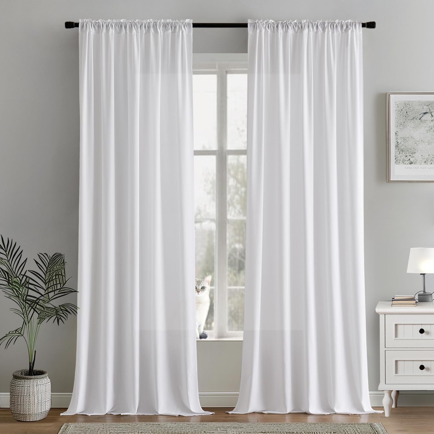 MIULEE White Privacy Sheer Curtains That Let Light in 102 Inches Long Non-See-Through Semi Sheer Curtains Light Filtering Window Curtain Drapes for Living Room Bedroom 2 Panels Set 42 X 102