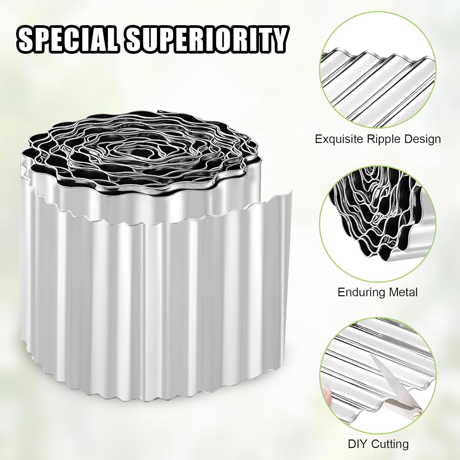 Corrugated Metal Garden Edging - 6 Inch X 20 FT Landscape Edging Border, Flexible Border for Garden Fence, Flower Bed, and Lawn (Silver)
