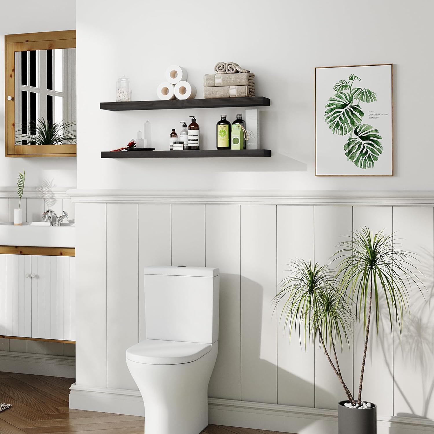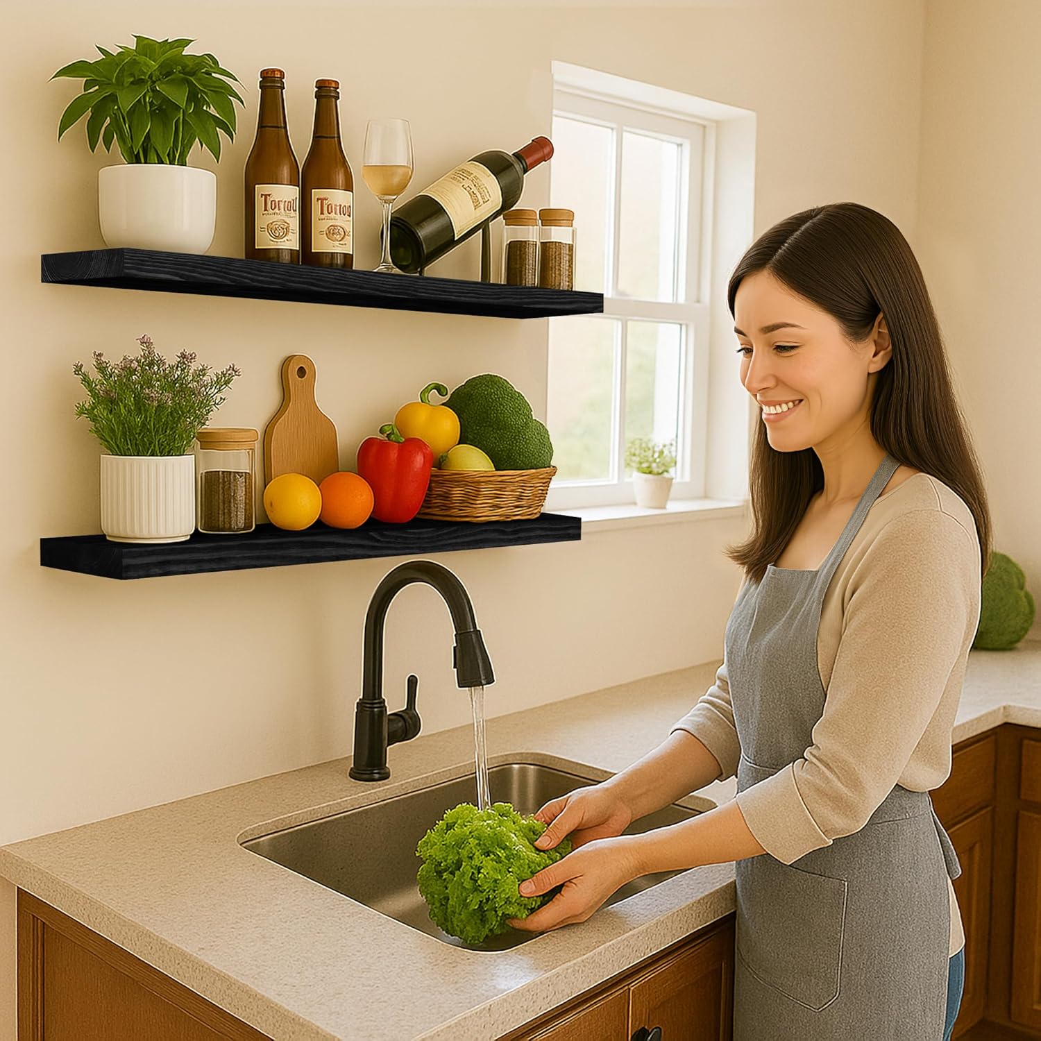 - MODERN RUSTIC LOOK - The wooden floating shelves are made of 100% natural pine, and the wood has different nodes and grains, so the color of each shelf may be slightly different, but equally stunning