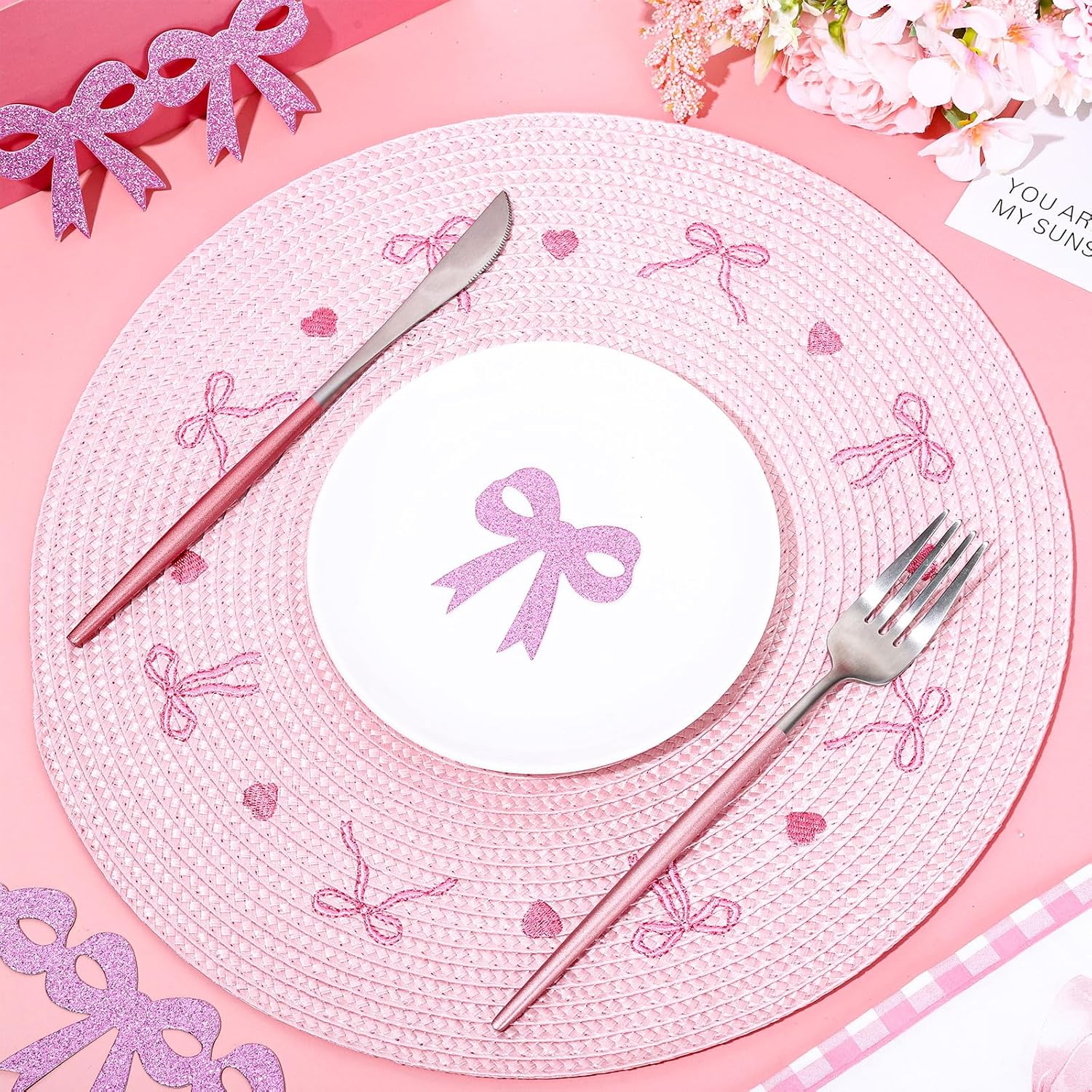 - Pink Bow Design: Embroidered with pink bows, taking pink as theme color, quite suitable for your party and dining table decoration