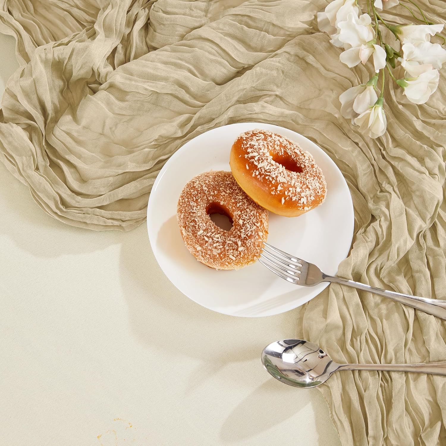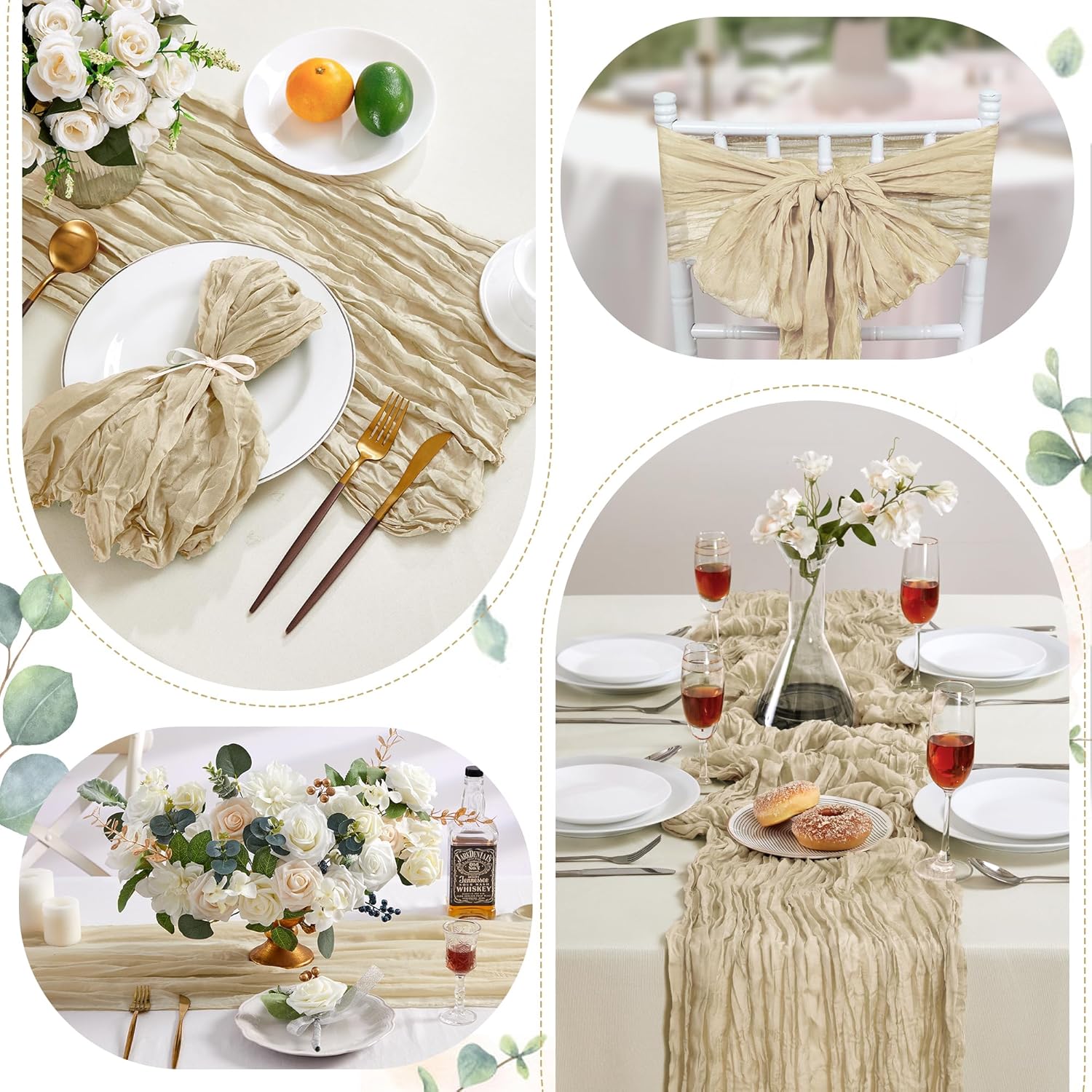 Cheesecloth Table Runner 10FT Long Boho Gauze Table Runner Rustic Sheer Runner for Wedding Bridal Baby Shower Birthday Party Table Decor Thanksgiving Christmas (Beige, 6 Pack)