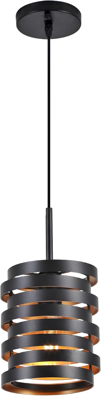 - Rustic Farmhouse Style -- Farmhouse pendant light was made by a skilled craftsman. The light body is composed of 8 rings black with gold interior decoration, arranged in 8 tiers to create a very unique look. The stacked rings will cast beautiful light and shadow under the irradiation of the light.