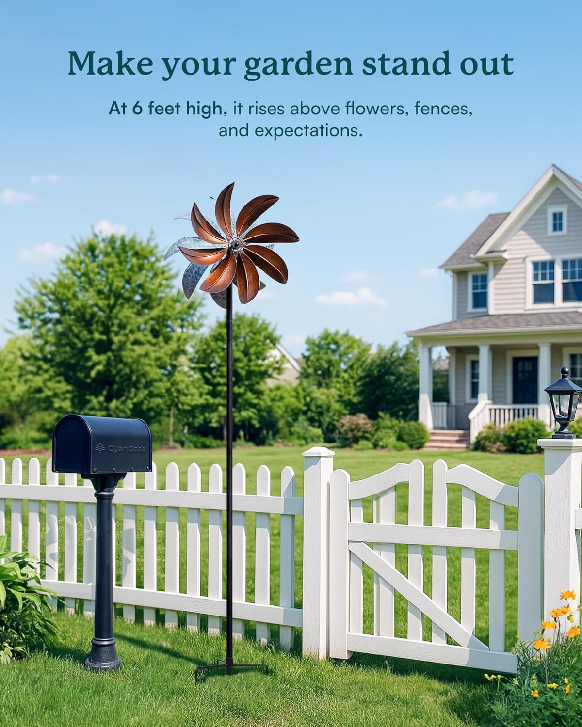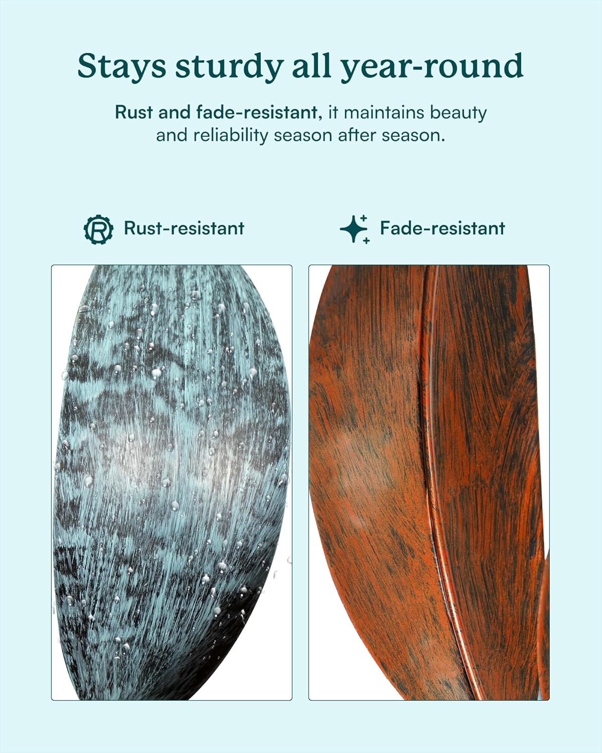 - Stays sturdy all year-round: Built with all-metal construction and weather-resistant paint, this wind spinner is waterproof, fade-proof, and designed to withstand harsh conditions. Its thicker, heavier blades resist strong winds without bending or deforming.