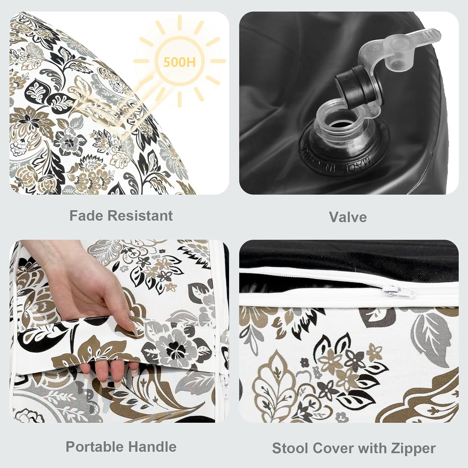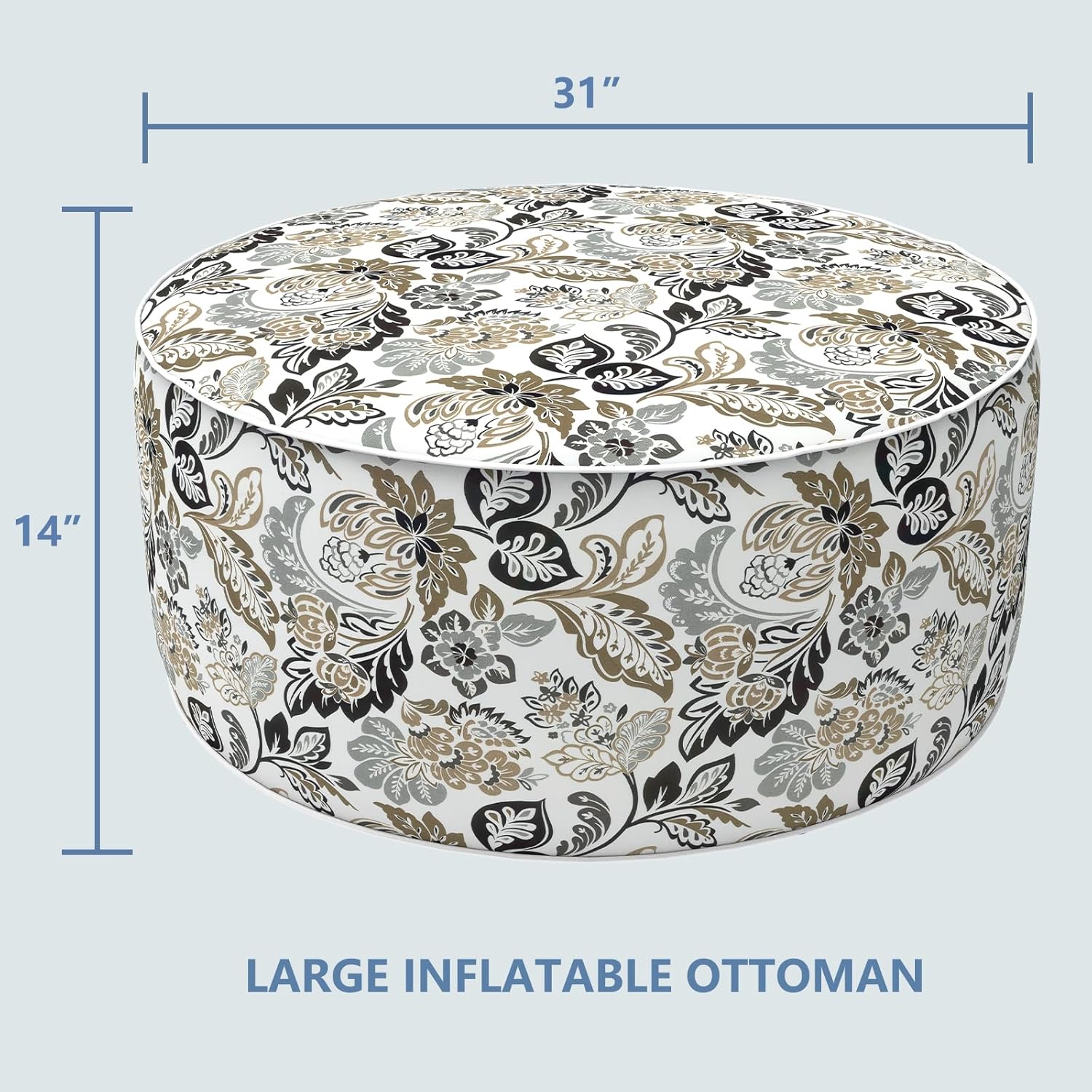 LVTXIII Outdoor Inflatable Ottoman, Fade-Resistant Round Footrest Stool D31”x H14”, Portable Patio Pouf for Garden Camping or Home Use, Dailey Tan