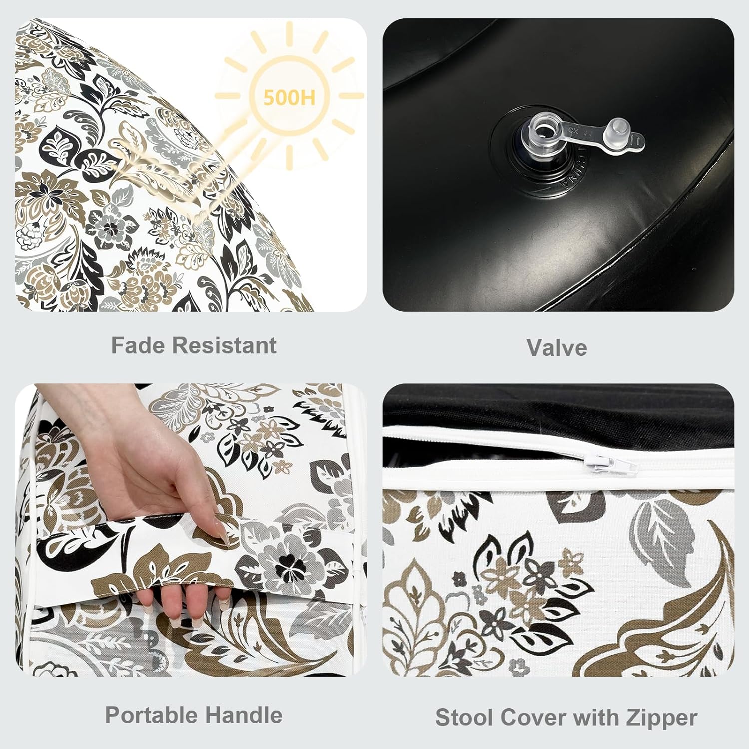 LVTXIII Inflatable Stool Ottoman Footrest with Handle, Decorative Fade-Resistant Foot Stool, Indoor or Outdoor Pouf for Home Garden and Camping Use, 21x21x9, Dailey Tan