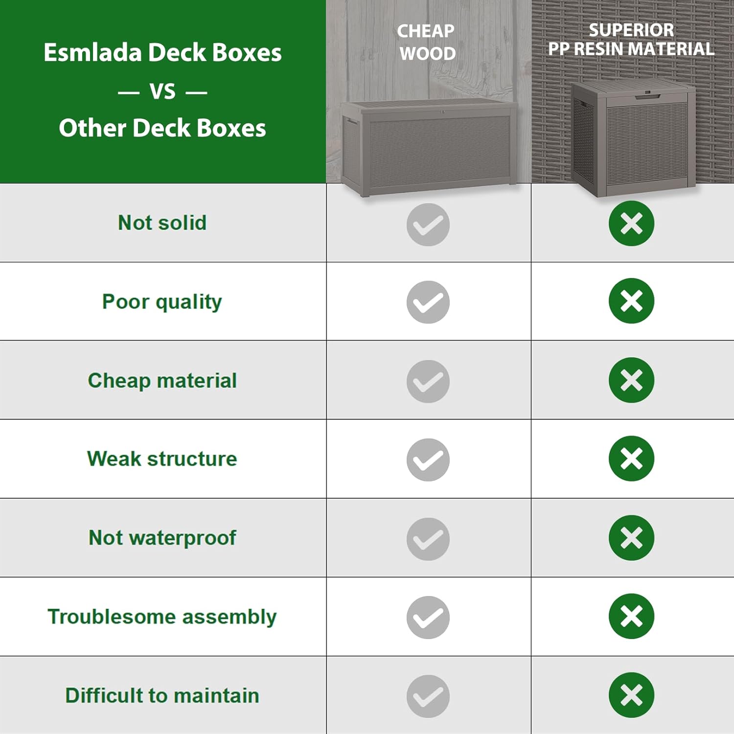 - 🏕️【HIGH QUALITY MATERIAL】This outdoor storage bin is made of high-density PP resin with excellent waterproof, sunproof and dustproof performance to withstand all kinds of harsh weather, while the rattan-like texture surface design adds a modern touch to your outdoor space.