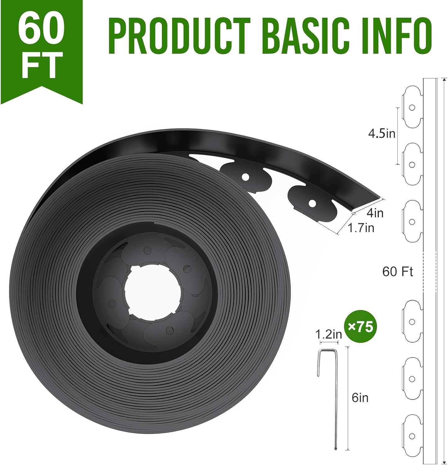- What You Get: Landscape edging kit included a 60ft edging coil 4 inch tall, 75Pcs metal staples. More staples help you design more professional landscape