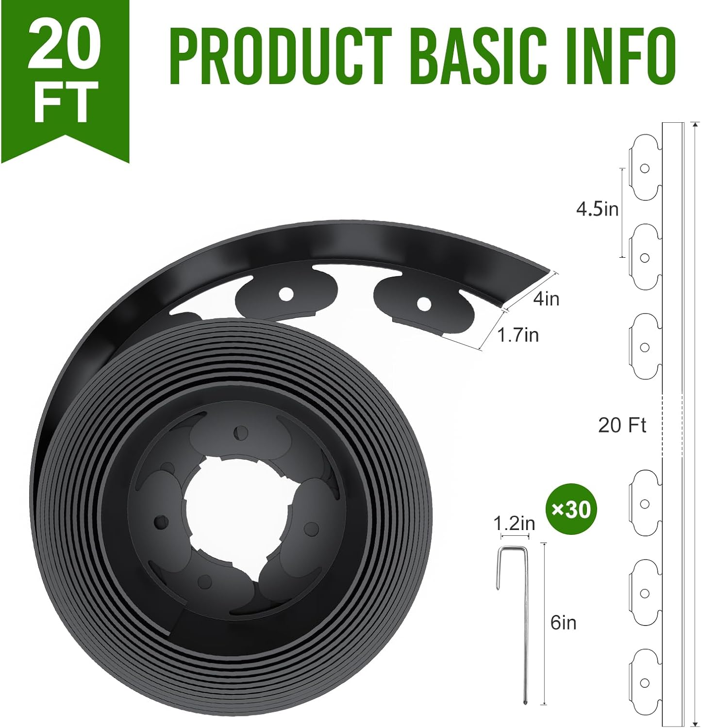 - What You Get: Landscape edging kit included a 20ft edging coil 4 inch tall, 30Pcs metal staples. More staples help you design more professional landscape