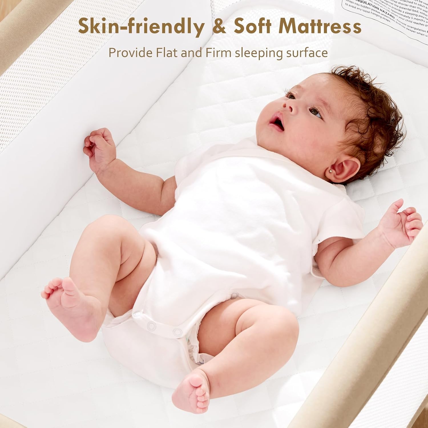 - Cozy Sleep with a Washable Mattress - This baby bassinet comes with a soft, skin-friendly mattress that is fully removable and washable, making it easy to keep your baby’s sleeping environment clean and hygienic. Protect your baby’s delicate skin while ensuring a cozy, restful sleep. Keep your bassinet fresh and ready in just a few simple steps