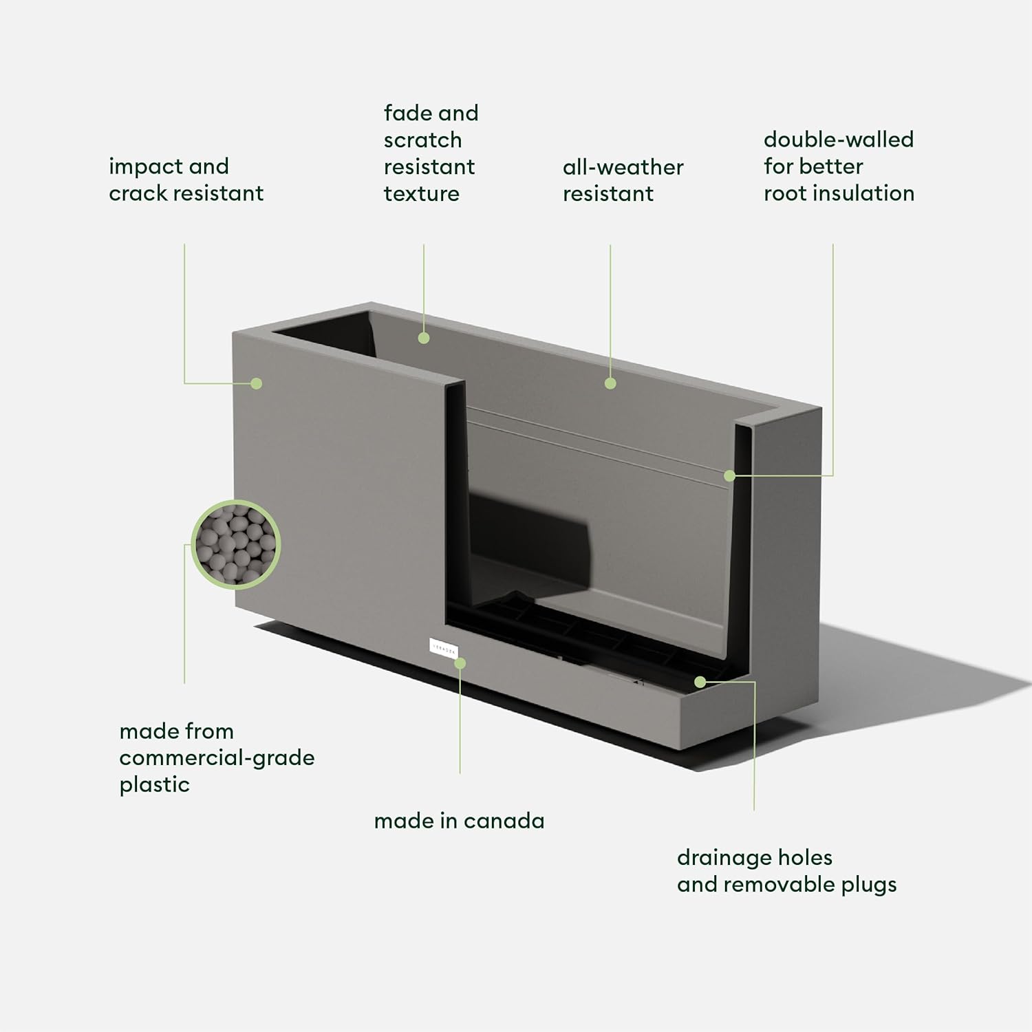 - PROUDLY MADE IN CANADA - Designed and made in Canada, so you can rest assured that your Veradek long planter will be of the highest quality and last all year round