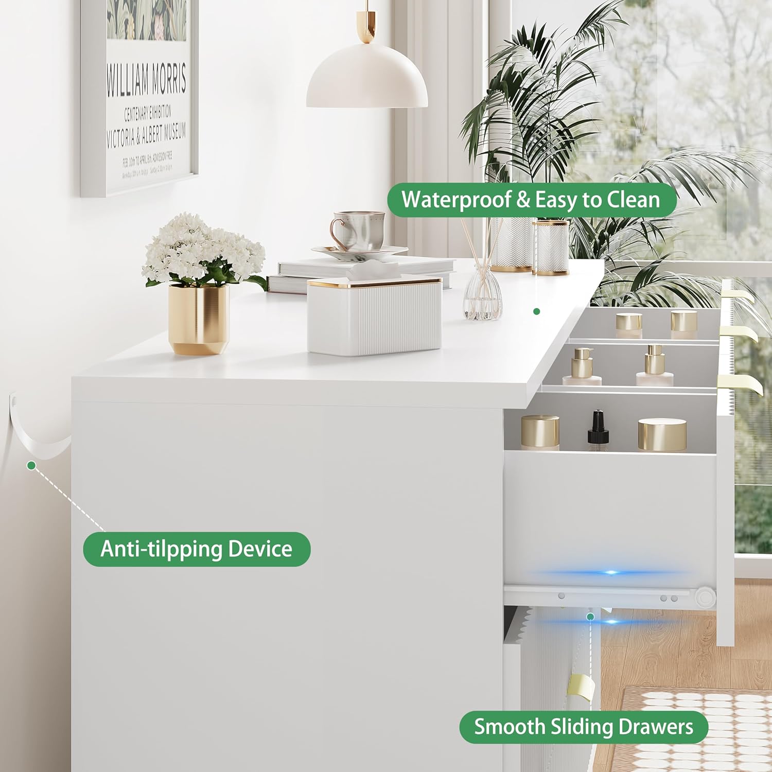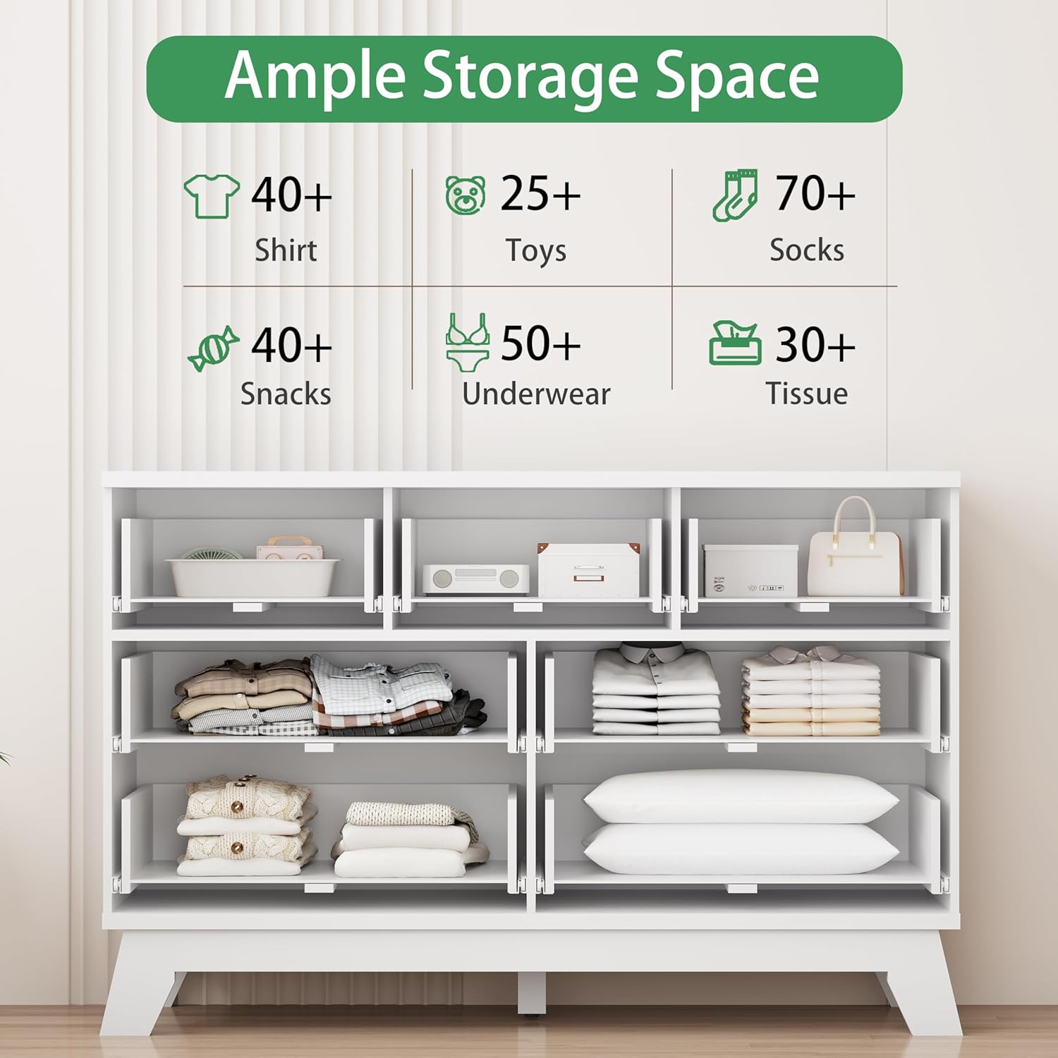 - 【Stability & Safety】The white/black/natural oak dresser is equipped with an anti-tipping device, which can be fixed on the wall to prevent accidents. Each drawer contains a wide metal handle and built-in slide rail, easy to push and pull. Besides, the sturdy base provides this dresser with drawers a strong support and the middle feet can be adjustable to keep balance on uneven floors