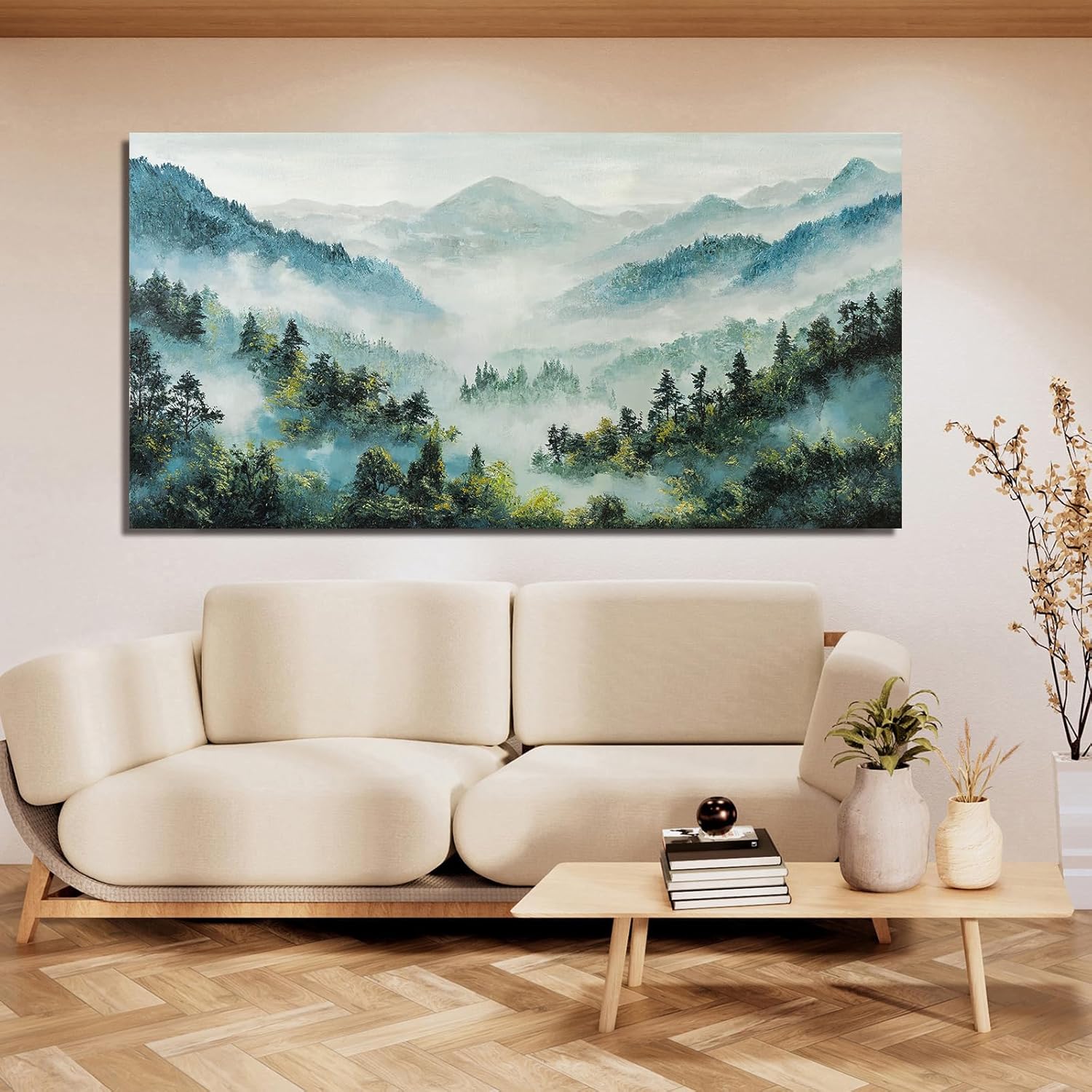Canvas Wall Art Decor Art Work for Wall Decor Mountain Botanical Wall Art Decor Large Wall Art for Living Room White Foggy Forest Wall Art Art Work for Home Ofiice Bedroom Wall Decor 29" x 58"