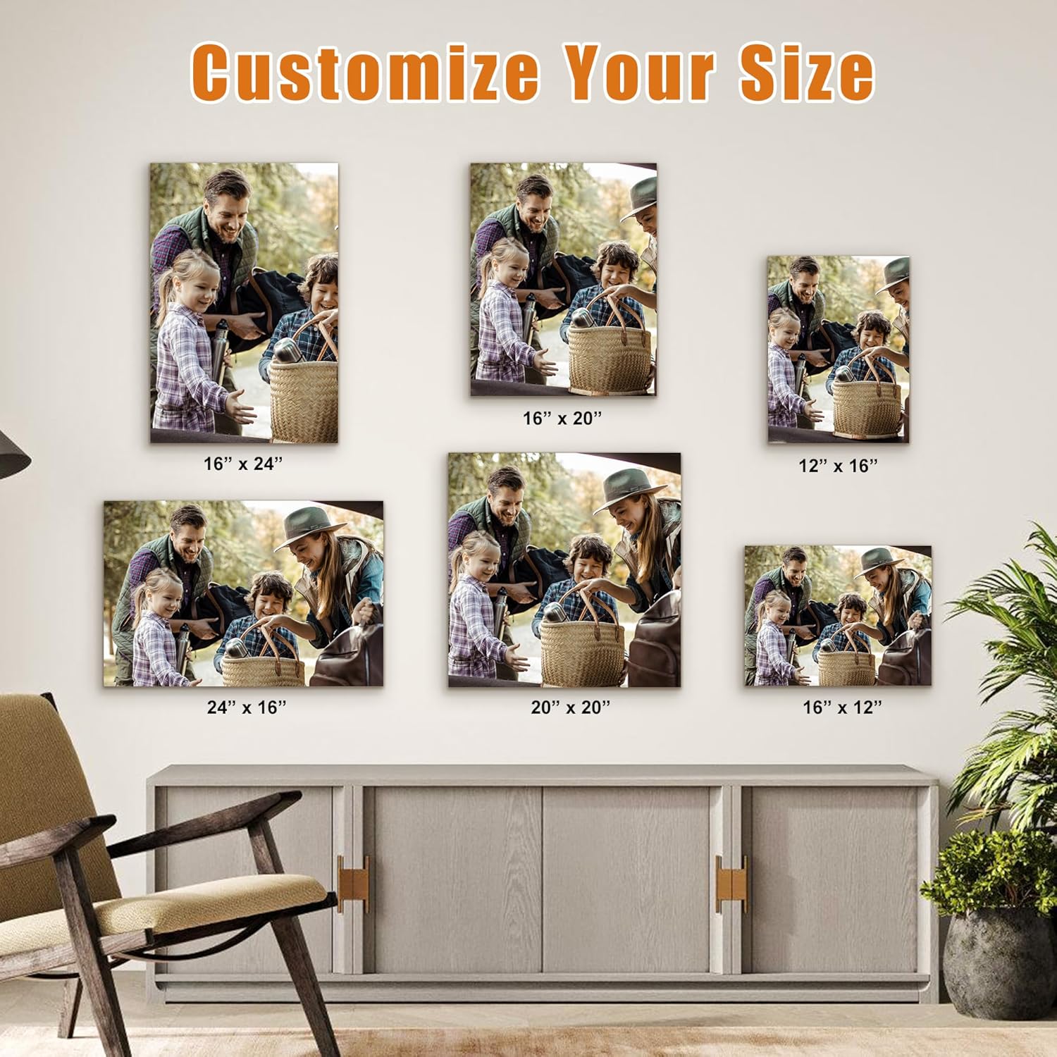 - Canvas Prints with Your Photos: Customized canvas wall art as decoration for living room, bedroom, bathroom, dining room, kitchen etc or a perfect gift for the person you cherish. Fill the walls of your home with stunning gallery wrapped canvas print.
