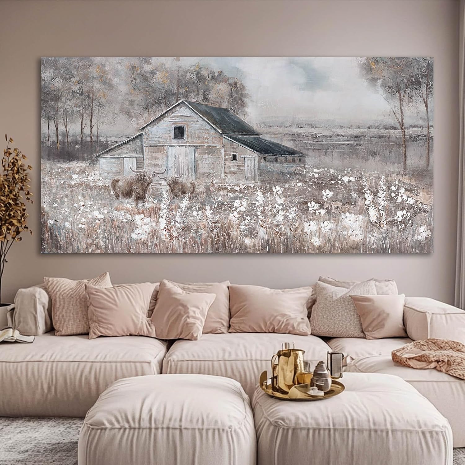 SDYA Cow Home Wall Decor Floral Canvas Print Room Decorations 29"x58" Large Pictures for Living Room Wall Art for Dining Room Area