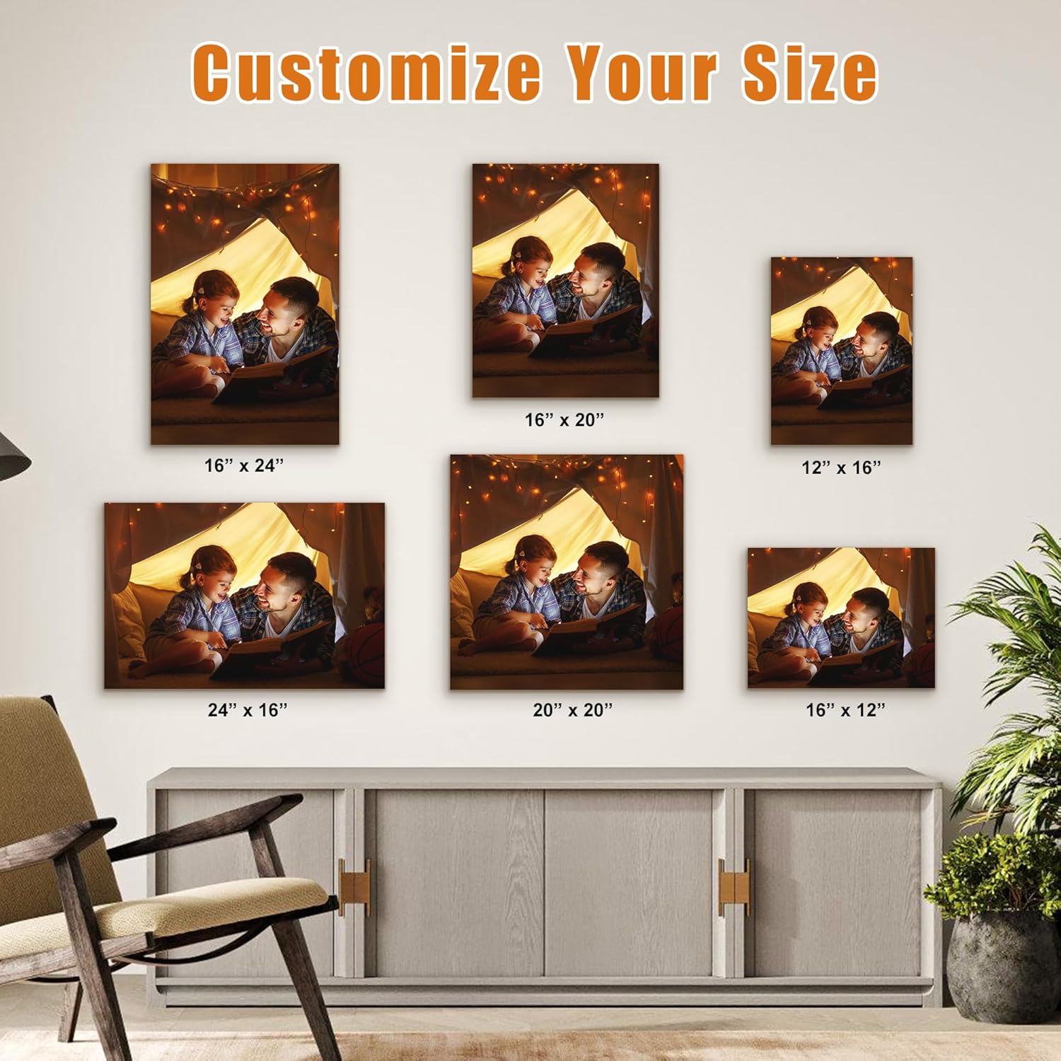 - Canvas Prints with Your Photos: Customized canvas wall art as decoration for living room, bedroom, bathroom, dining room, kitchen etc or a perfect gift for the person you cherish. Fill the walls of your home with stunning gallery wrapped canvas print.