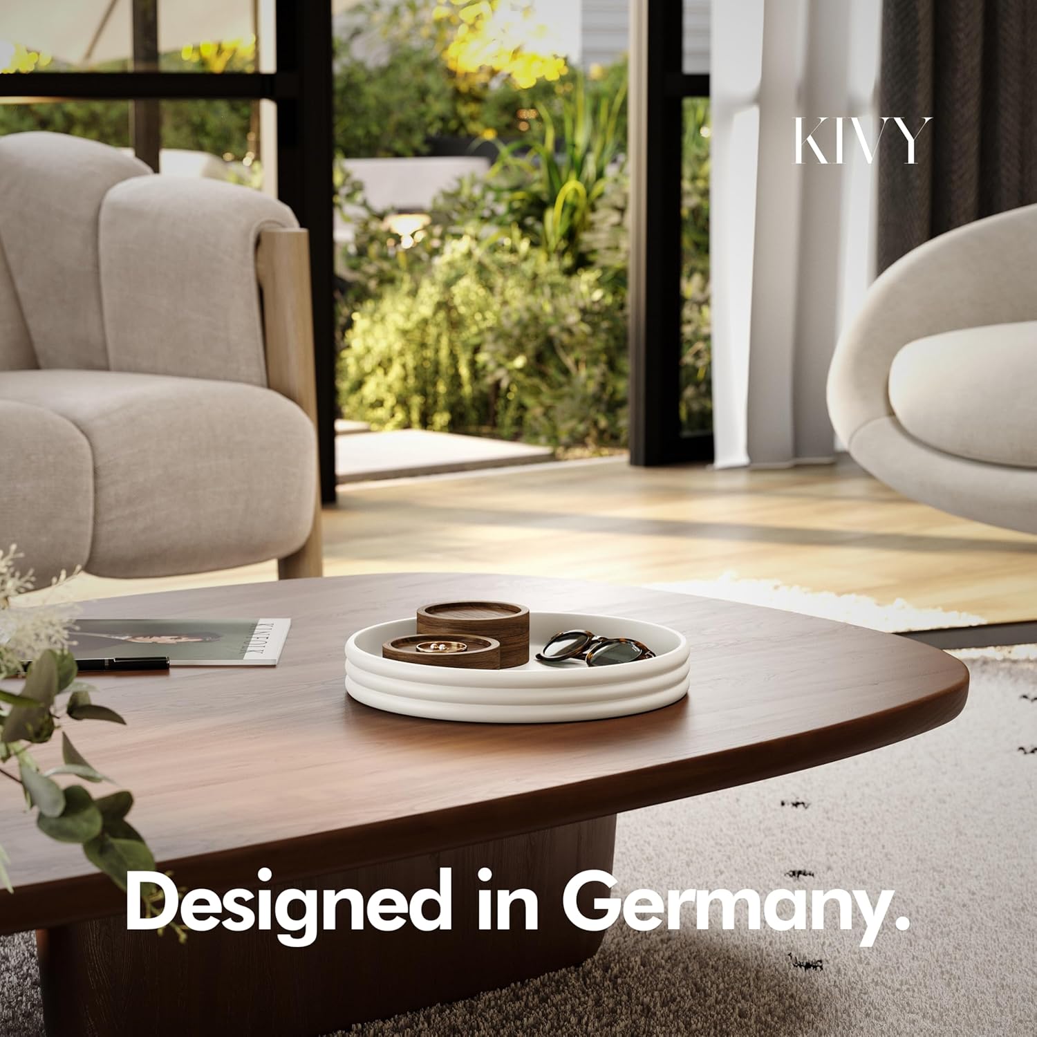 KIVY Round Decorative Concrete Tray 11x1,5 Inch - Modern Circle Coffee Table Tray - Home Decor Flat Bowl for Livingroom & Bedroom - Bandejas Decorativas - Circle Coffee Table Centerpiece (Cream)