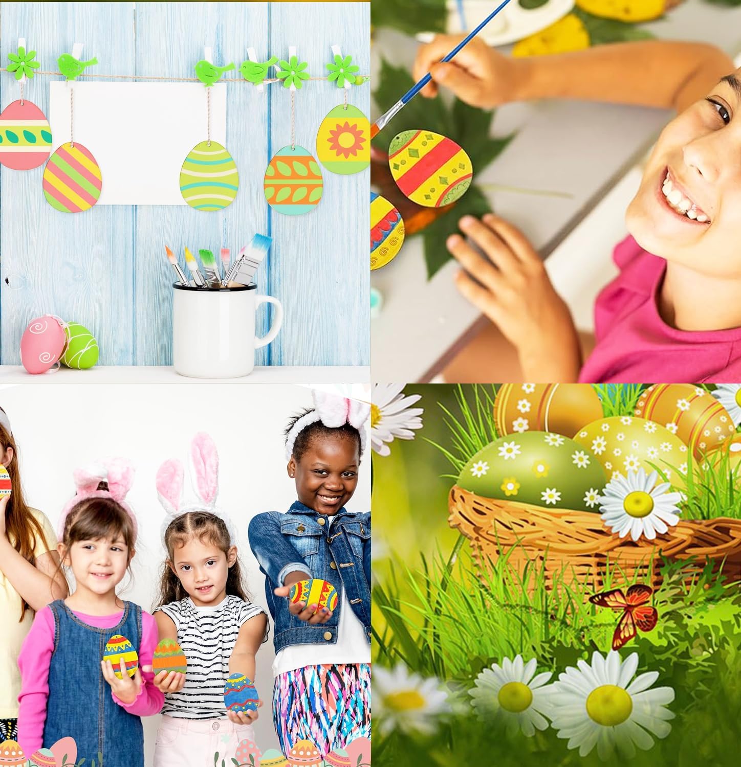 - ⬮【DIY EASTER CRAFTS】: These eggs ornament kits are suitable for DIY hand paintings, making Easter decorations, gift tags, family calendars, classroom boards, letterings, wish cards, table numbers, hangers, embellishments, coasters, backdrop decorations, photo props, and many others art and Easter craft for kids projects