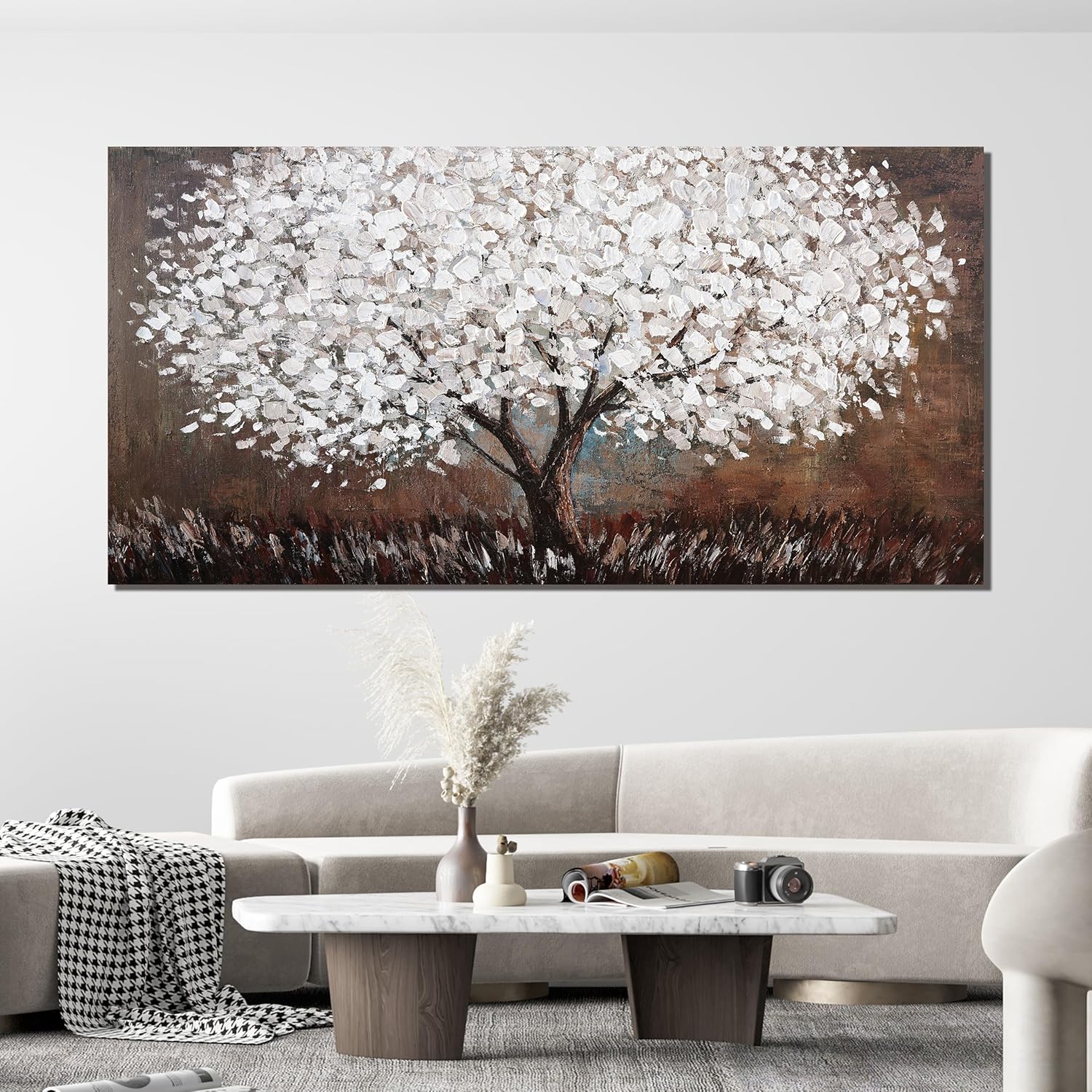 Canvas Wall Art Decor Artwork for Walls Large Black and White Wall Art Decor for Living Room Tree of Life Wall Art Vintage Tree Flower Wall Decor Art Paintings for Room Home Office Wall Decor 29"X58"